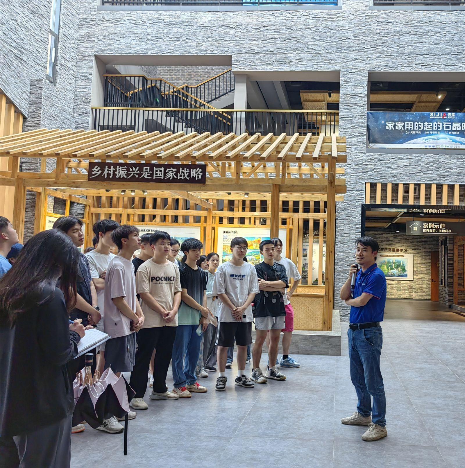 本次实践活动,农房科技博物馆投资单位广西那园旅游投资有限责任公司的张飞军总经理热情的接待师生,并为同学们在针对乡村规划、农房整体布局、建筑功能组成、建筑风貌设计具体手段、建筑在规划建筑群布局的设计要点、建筑改造设计的要点进行讲授,同时介绍新型建筑建造材料、建造技术以及智慧农房的设计理念,帮助学生了解新型智慧农村建筑设计行业发展前沿的知识。(土木与建筑工程学院供稿 文/范媛 图/刘悦)