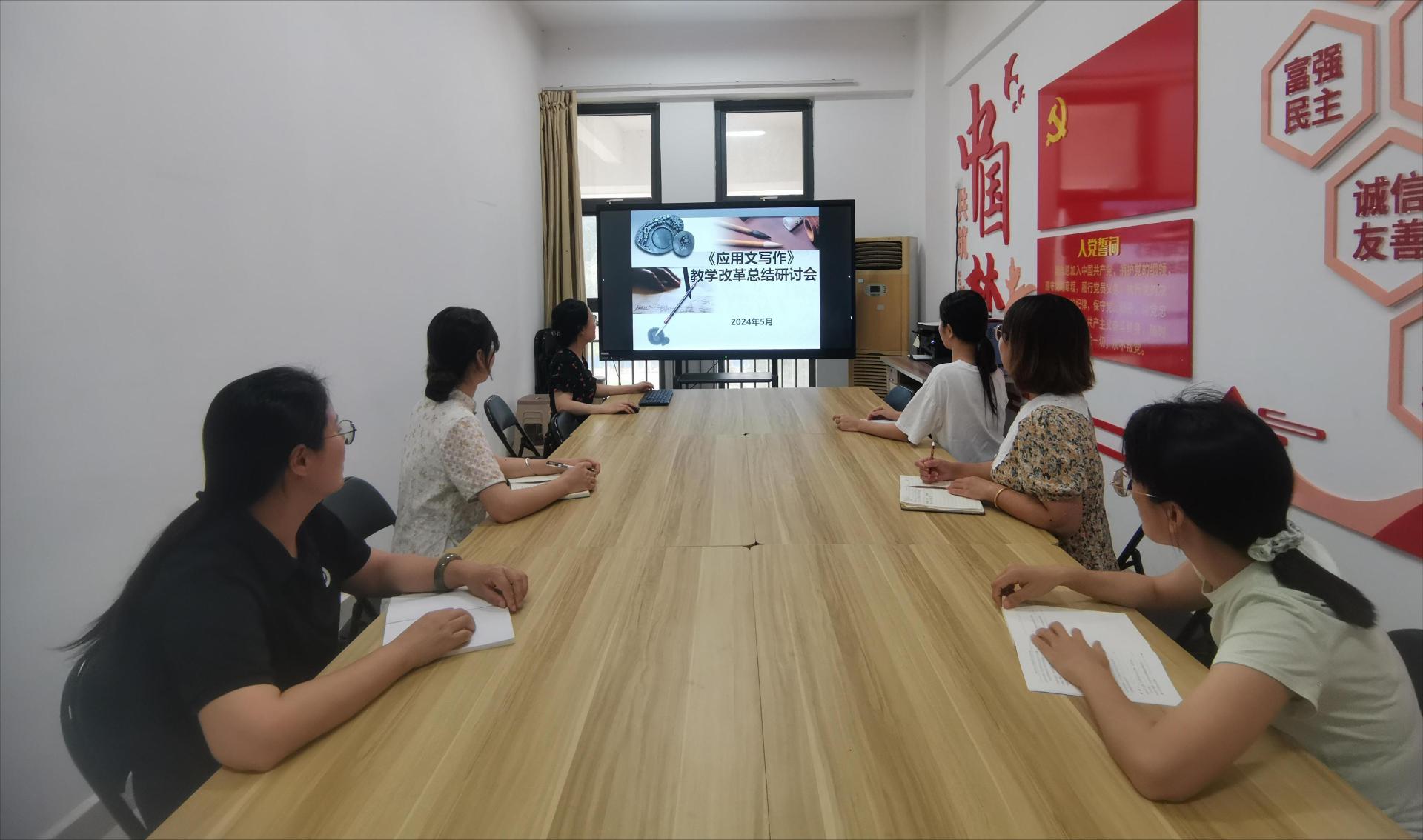 为总结《应用文写作》课程教学改革项目的研究成果,5月17日上午,在行政楼302会议室,《应用文写作》课程教学改革团队成员参加了“基于任务驱动的线上线下混合式教学在应用型本科高校应用文写作课程中的研究与实践”项目的总结研讨会,会议由项目负责人何华珍老师主持。