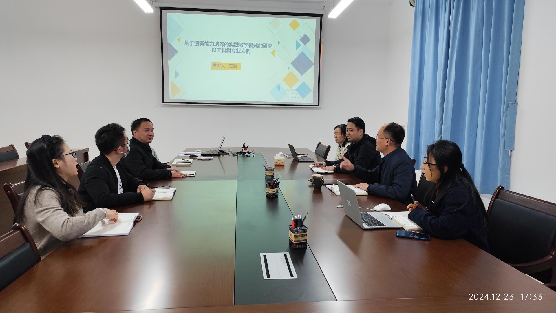 2024年12月23日下午,《基于创新能力培养的实践教学模式的研究-以工科类专业为例》项目团队在新东盟大楼A1007分享项目成果,参与人员包括课题组成员和部分土木与建筑工程学院实践教学相关教师,分享会由项目负责人王海老师主持。