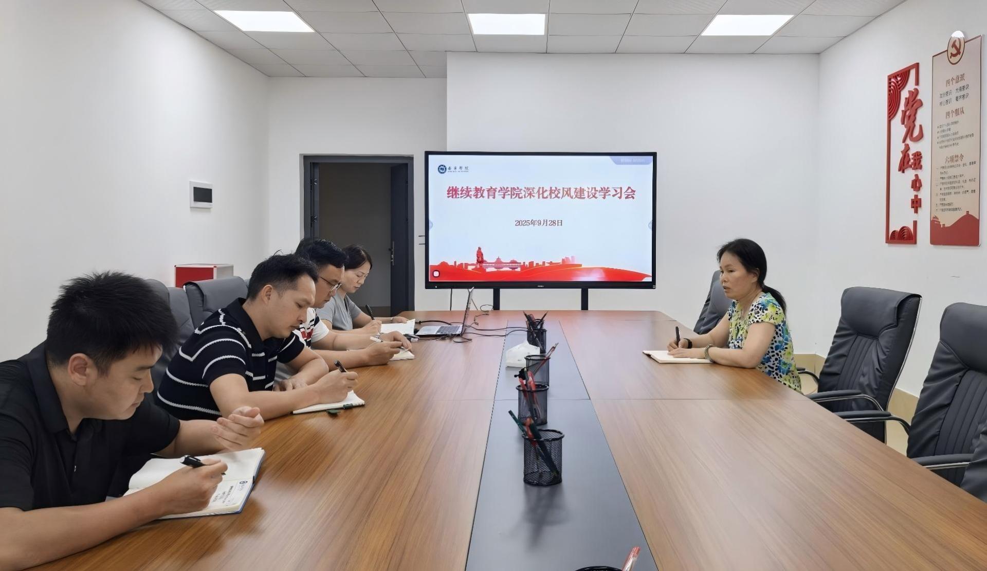9月28日下午,继续教育学院召开深化校风建设大学习活动(第一期)部署会,会议由学院党支部书记、院长杨小凤主持,学院全体教师出席会议。