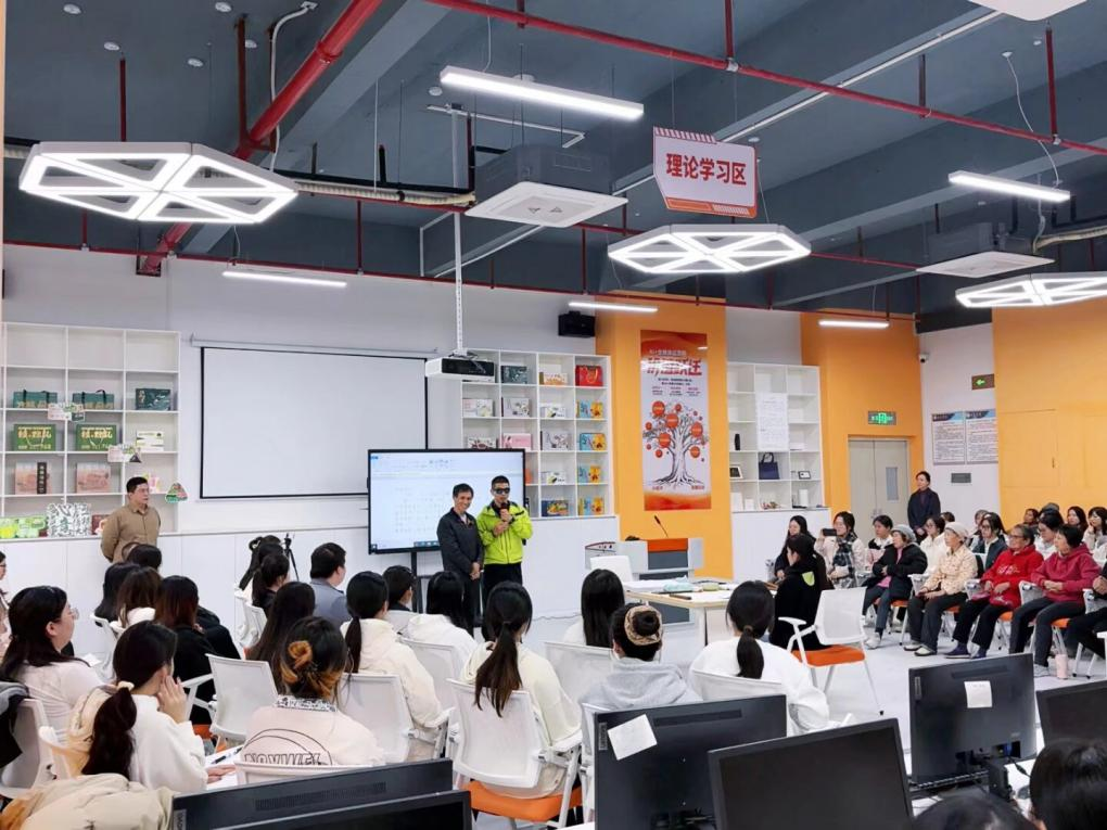 2025年12月16日下午,商学院在新文科楼108实训室举办第二期美育工作坊沙龙活动。本次活动特邀中国非遗盲画第五代传承人,“中国青年志愿者杰出个人”提名奖,广西青年五四奖章、广西先进工作者、南宁市劳动模范获得者,深耕特殊教育五十余载的“盲画点灯人”曾柏良老师担任主讲嘉宾,学院党委副书记覃雪莲担任沙龙活动主持人,学院学生党支部党员、入党积极分子齐聚现场,在榜样的故事中感悟初心使命,汲取奋进力量。