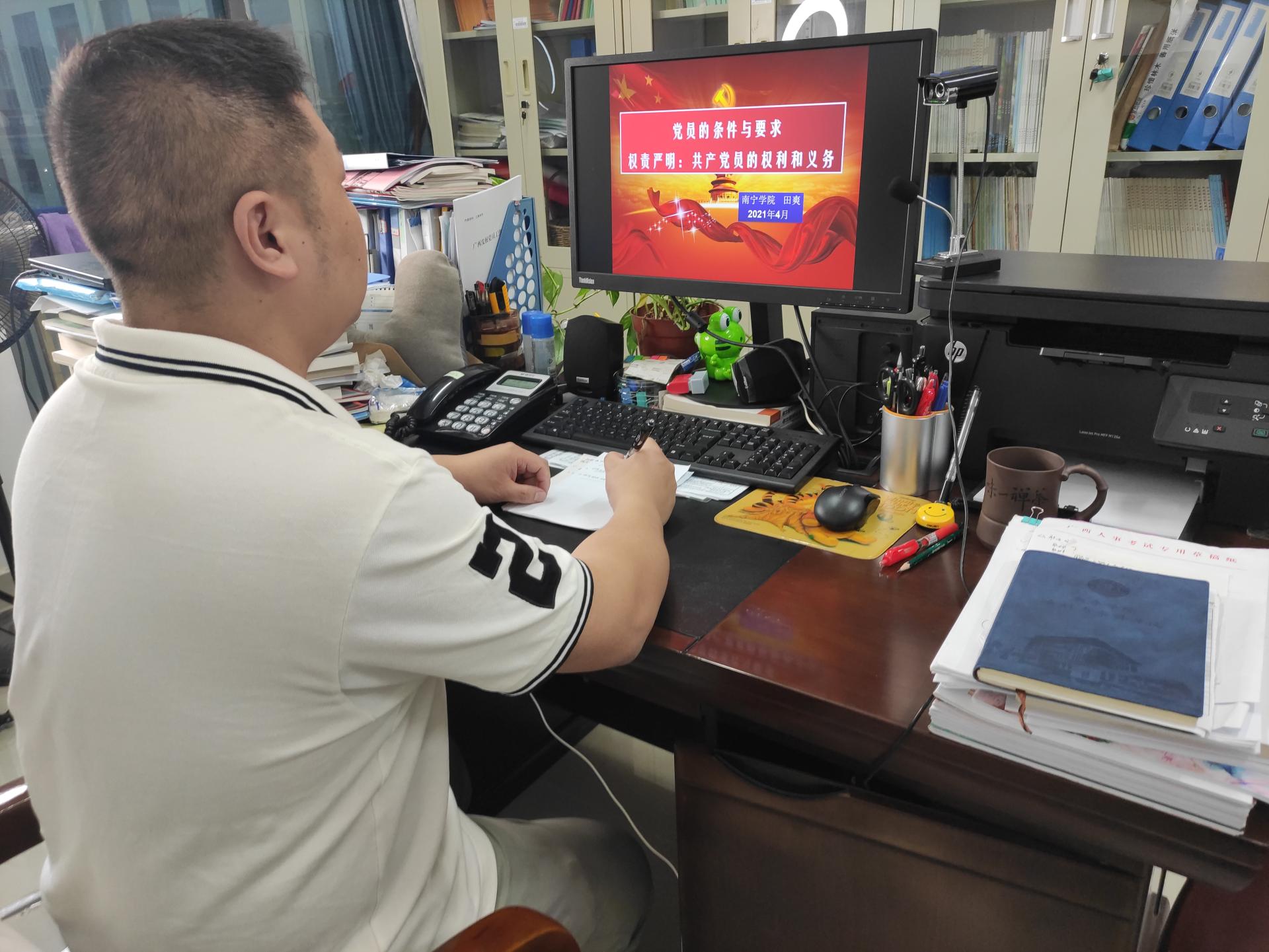 艺术设计学院党总支副书记廖秀媛在线上进行党课专题授课