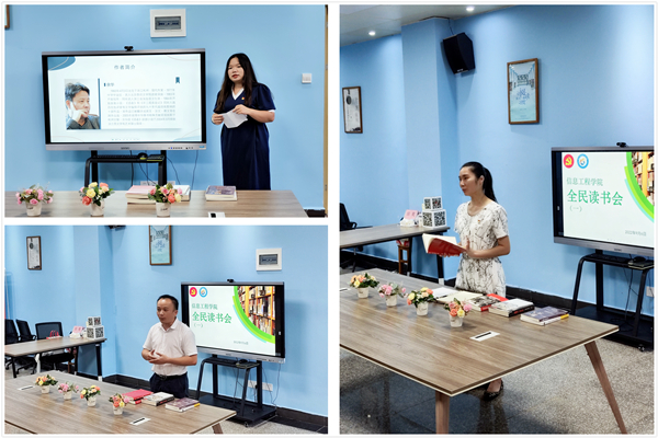 在全民读书会分享环节,叶星彤老师、黄磊老师与岑铭君副书记分别分享了最近在读的《活着》、《中华上下五千年》、《读书是一辈子的事》等书籍,通过阐述书中精彩片段,结合工作生活经历,畅谈阅读心得感悟。与会教职工在三位领导老师的分享中,体会了一次“云共读”的滋味,纷纷激起了对相关书籍的阅读兴趣,并表示要好好静心读一本好书,在学院接下来的全民读书活动中争取做一次分享人,共读、共品、共享好书。