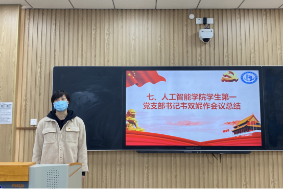 专职组织员、学生第一党支部书记韦双妮作总结