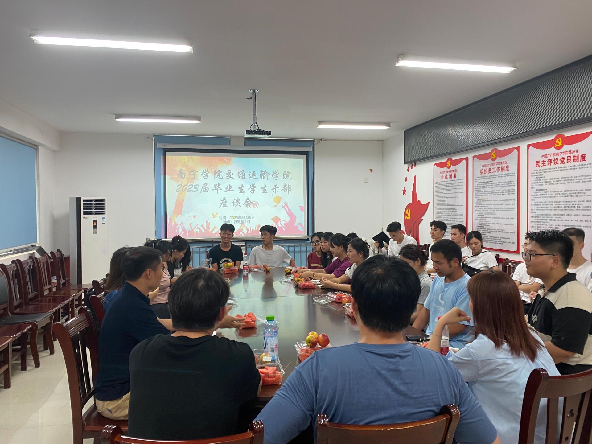 6月20日下午,交通运输学院2023届毕业生学生干部座谈会在行政楼422会议室召开,学生科蒋东霖老师、蒙乾老师及毕业生干部代表与会。座谈会由蒋东霖老师主持。