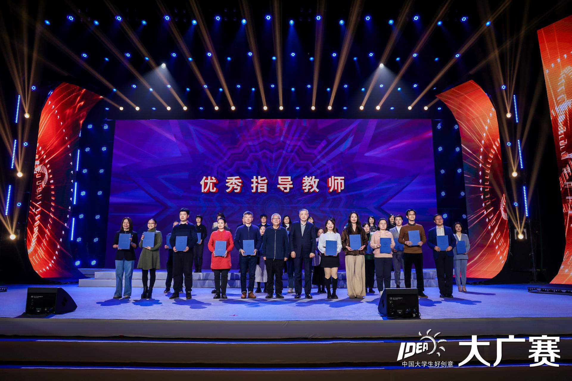 2023年11月25日,第十五届全国大学生广告艺术大广赛学科竞赛(以下简称“大广赛”)成果展示颁奖盛典在中国传媒大学中传礼堂隆重举办,教育部原副部长周远清、教育部原评估中心主任刘凤泰、教育部评估中心院校处副处长董垌希、中国高等教育学会副会长姜恩来、中国传媒大学校长张树庭、中央民族大学校长郭广生等教育部和高校相关领导,命题企业代表、各赛区负责人、高校师生近千人共聚盛会。艺术与设计学院视觉传达设计教研室主任邓海贝老师、马仙雁老师和部分学生代表参加了此盛典。