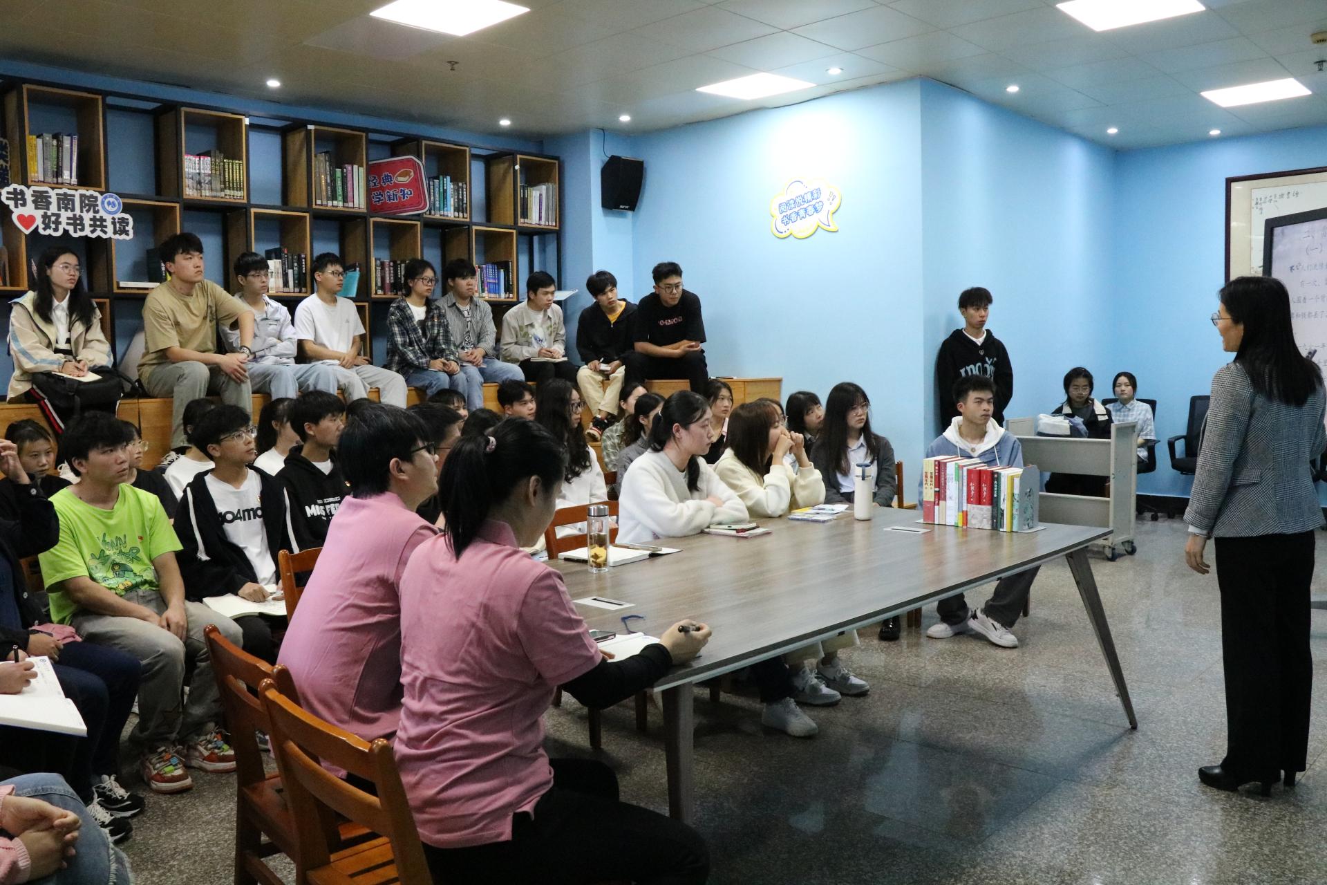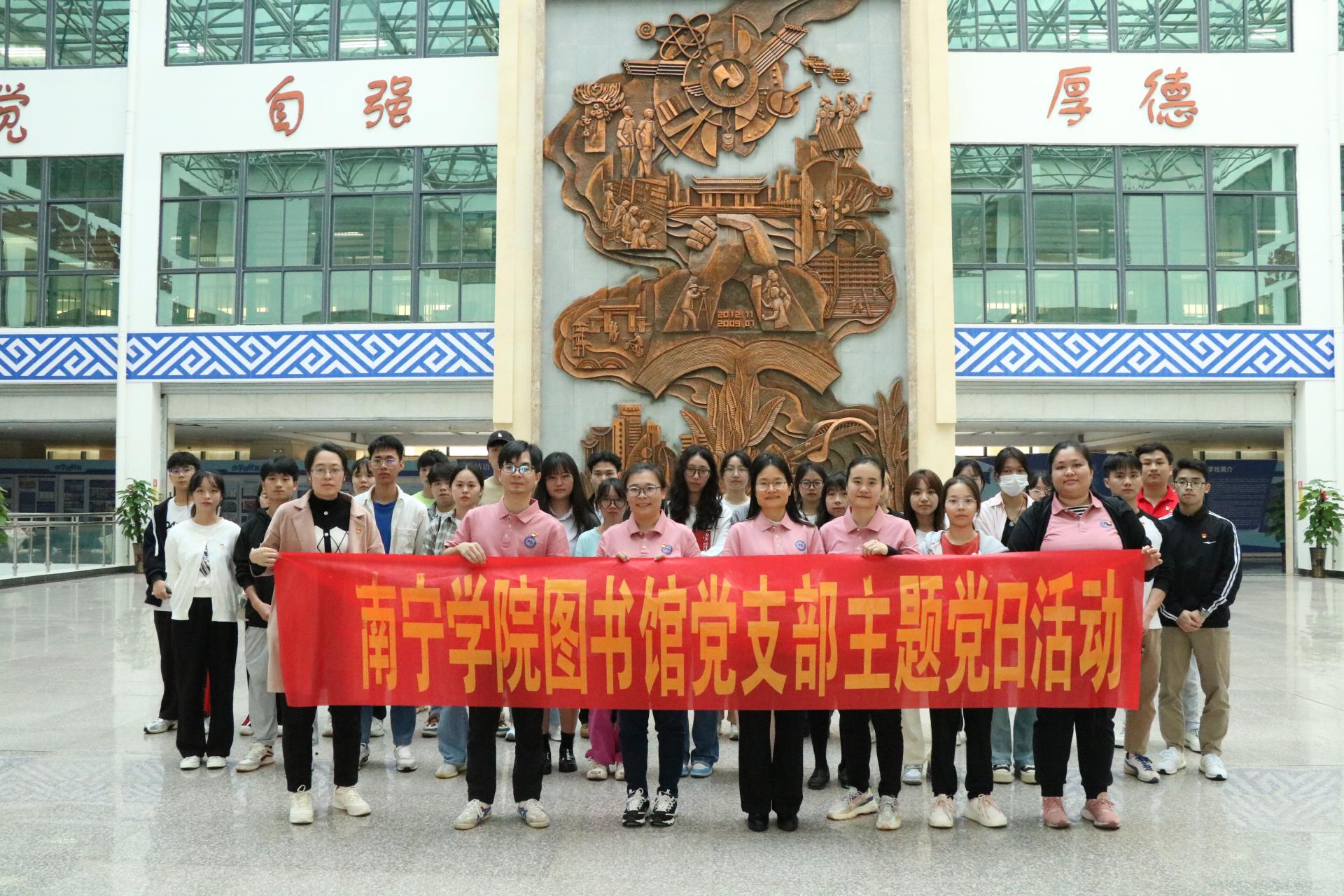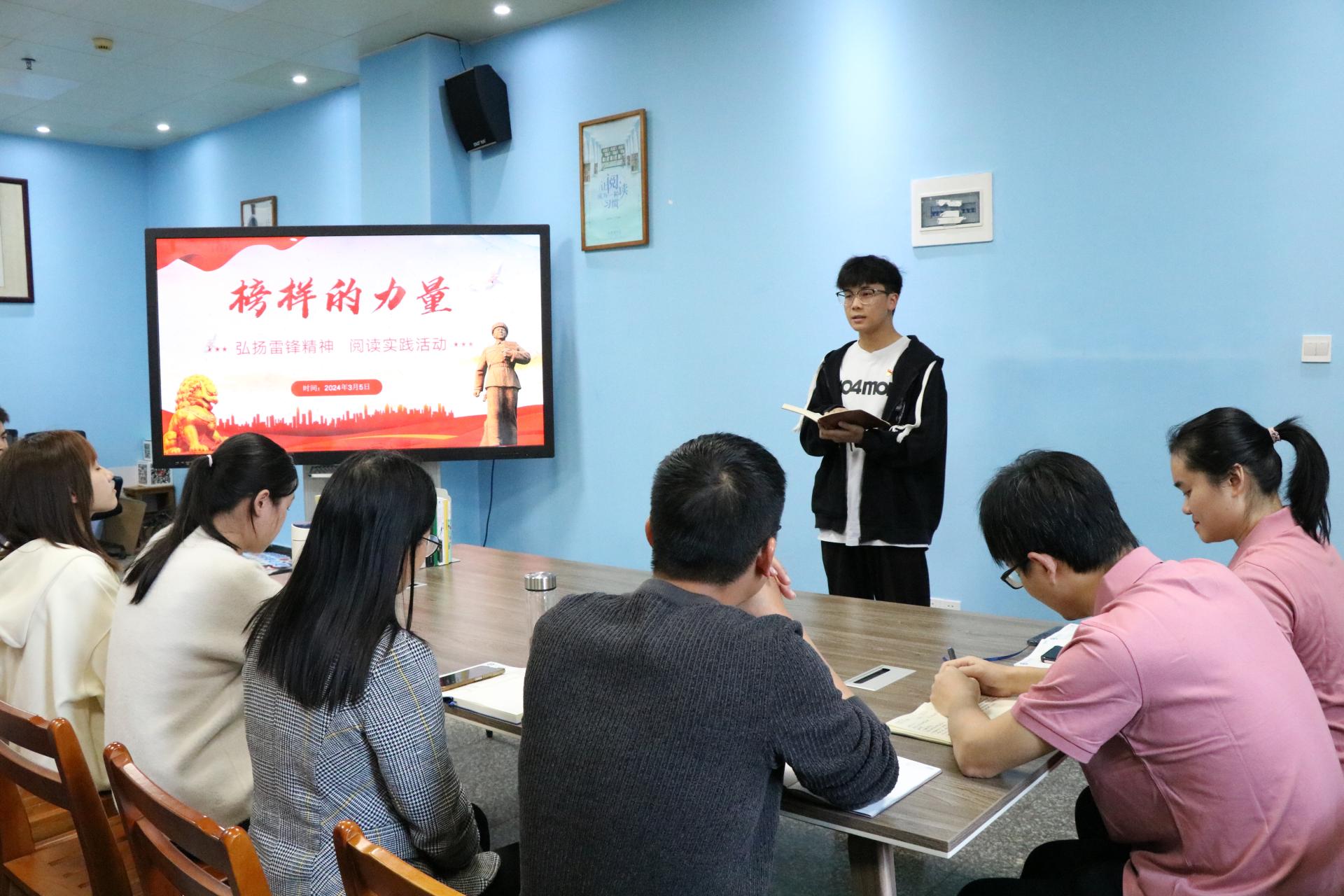 图书馆党支部书记韦相晓带领同学们学习雷锋精神