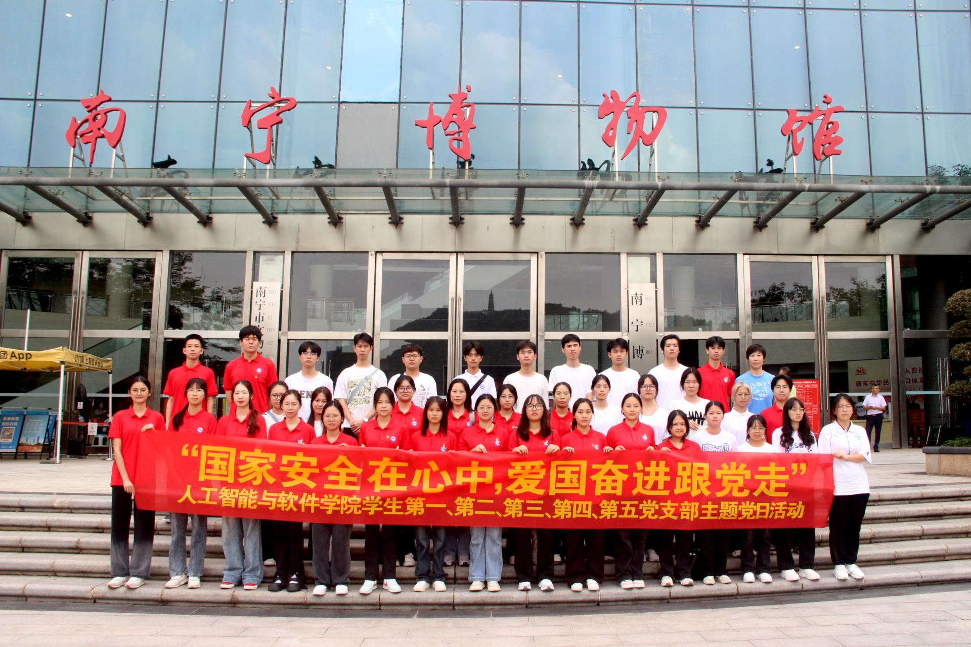 5月23日下午,人工智能与软件学院学生党支部到南宁市博物馆开展了“国家安全在心中,爱国奋进跟党走”的主题党日活动。参加此次主题党日活动的有学院专职组织员韦双妮老师、学生党支部党员、发展对象以及入党积极分子。