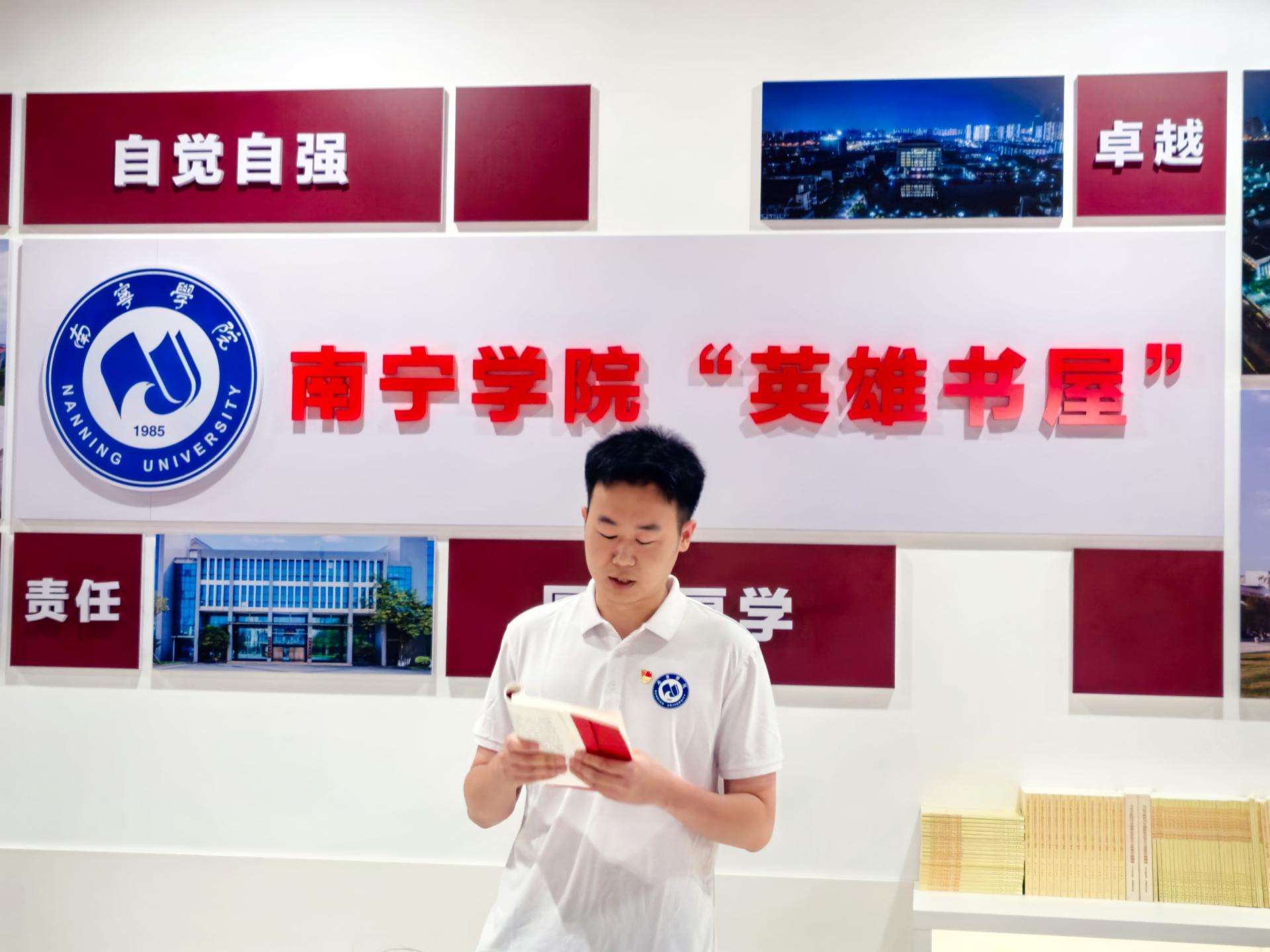 听了韦相晓书记对《青春之歌》的分享,同学们踊跃举手,分享自己在英雄书屋阅读的红色经典书籍及感悟。有聚焦1921-1949年间250余位革命先驱,展现20岁出头的革命者如何在黑暗中高举理想火炬的《革命者》,也有“向死而生”,揭示“人生价值在于贡献”的新时代共产党员《黄文秀》……此次红色书籍阅读分享,重构了同学们青春价值的坐标系,让一代代共产党人的形象转化为可触摸的温度,证明攻坚克难始终是共产党人的精神基因。