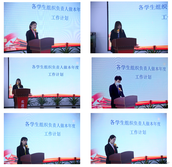 会议开始,各学生组织负责人对本年度组织工作做了详细的工作计划,工作计划思路清晰。各学生组织在开展各项活动的同时旨在积极引导大学生树立乐观、向上的人生观和价值观,弘扬青春正能量。同时,提高同学们自身发展的意义,培养同学们解决问题的能力、创新能力和实践能力。
