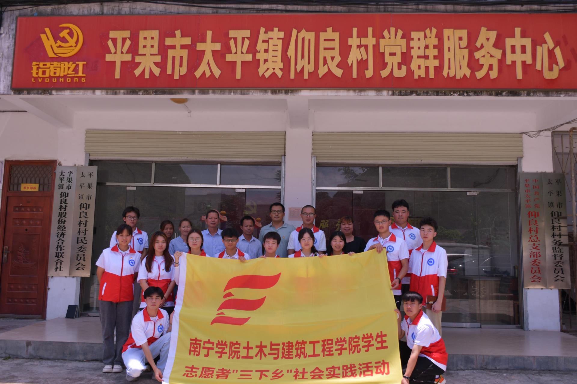 为深入学习贯彻习近平新时代中国特色社会主义思想、学习党的二十大精神,学习贯彻习近平总书记关于乡村振兴任务的重要论述,结合习近平总书记给中国农业大学科技学院的学生回信精神,引导和帮助青年学生在与现实相结合的“大思政课”中“受教育、长才干、作贡献”,为加快建设农业强国、建设宜居宜业和美乡村贡献新的更大力量。qm球盟会土木与建筑工程学院“青春筑梦·情暖仰良”乡村振兴促进团于2023年7月10日至7月14日前往广西平果市太平镇仰良村开展暑期“三下乡”社会实践活动。