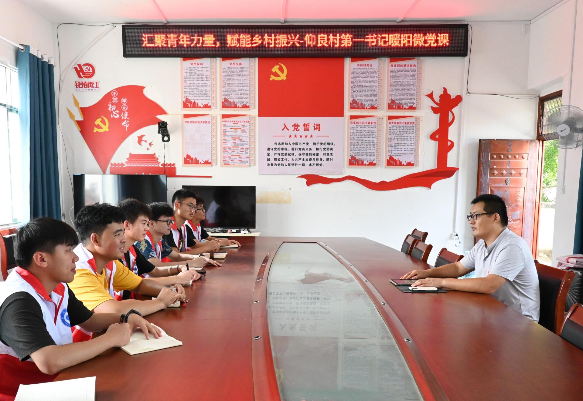 仰良村第一书记李鹏飞在给促进团成员们上微党课