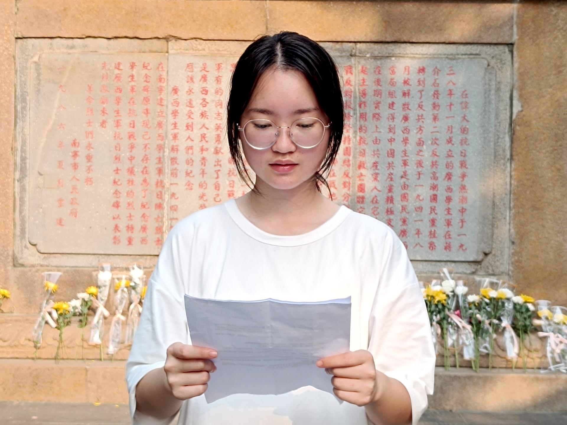 学生代表芮炳楠宣读祭文