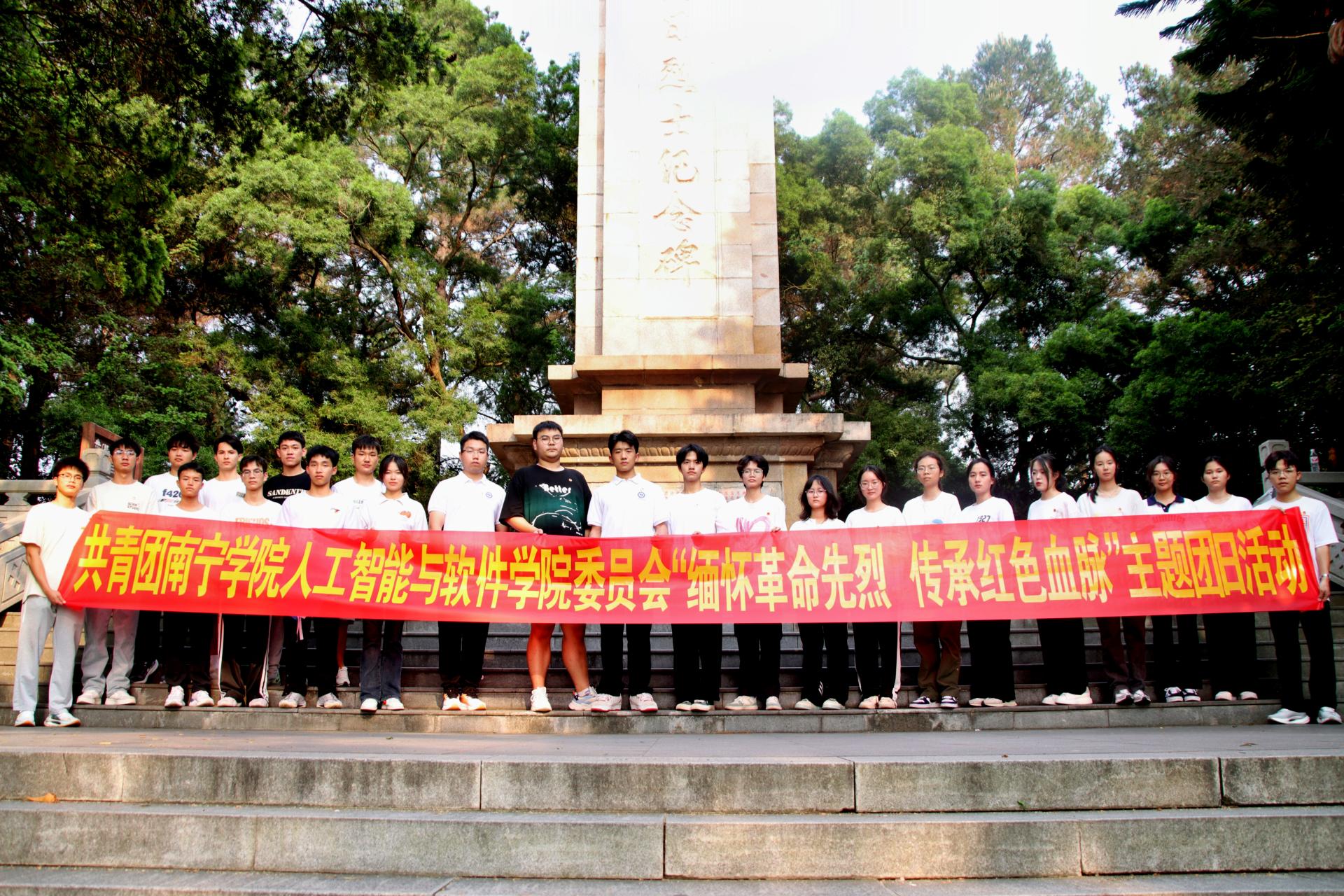 为进一步弘扬爱国主义精神,铭记先烈的丰功伟绩,传承红色基因、赓续红色血脉,进一步凝聚奋进新时代新征程的强大力量,4月2月下午,人工智能与软件学院团委到青秀山广西学生军抗日烈士纪念碑前开展“缅怀革命先烈 传承红色血脉”主题团日活动。