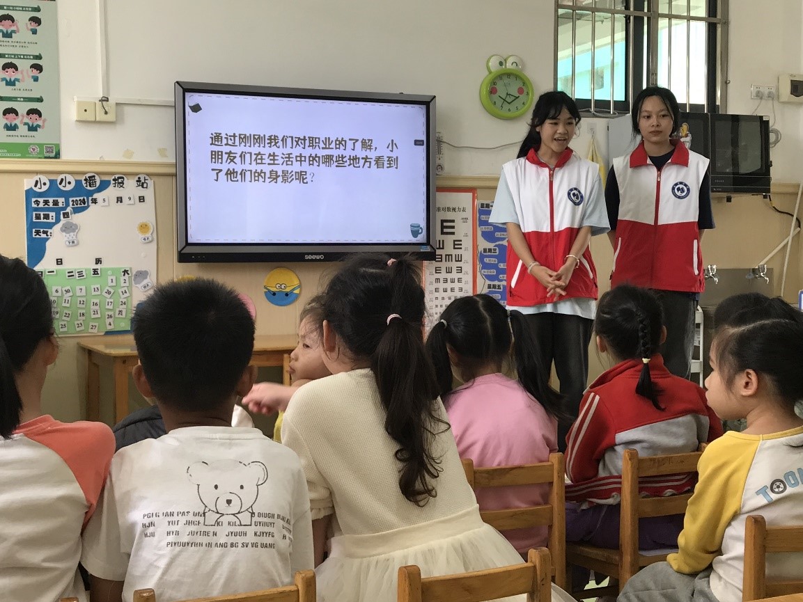 团委学生干部策划了三组不同内容的活动,分别是“劳动小能手,探索大世界”组、“五彩职业秀”组和“欢乐五一,知识小达人”组。在幼儿园老师们的帮助下,同学们分别带领幼儿园大班的儿童开展活动。“劳动小能手,探索大世界”组的活动让儿童们了解了幼儿园老师这一职业,活动中他们回答问题的热情持续高涨;“五彩职业秀”组的活动是让儿童们想象劳动者的形象并作画,画笔的“沙沙”声和儿童们的欢笑声充满整个教室;“欢乐五一,知识小达人”组的活动以比赛的形式进行,儿童们积极参与比赛,获奖的小朋友得到奖品一份,活动过程洋溢着欢乐的气氛。