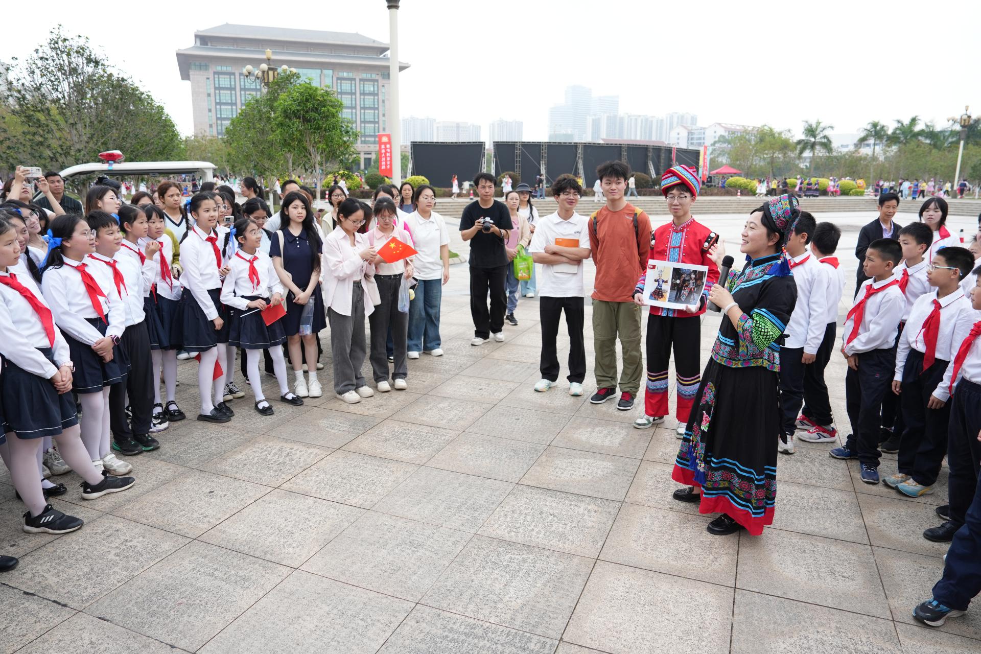 师生理论宣讲服务社会,共画立德树人同心圆。学校以铸牢中华民族共同体意识为主线,构建“教师+学生”双维宣讲体系,教师团队多次受邀赴基层和企业开展理论宣讲活动。同时,学校“青春话百年”宣讲团走出校园,深入社区,通过“朋辈宣讲”,用通俗易懂的语言和鲜活案例,向广大群众和学生传递中华民族共同体意识。