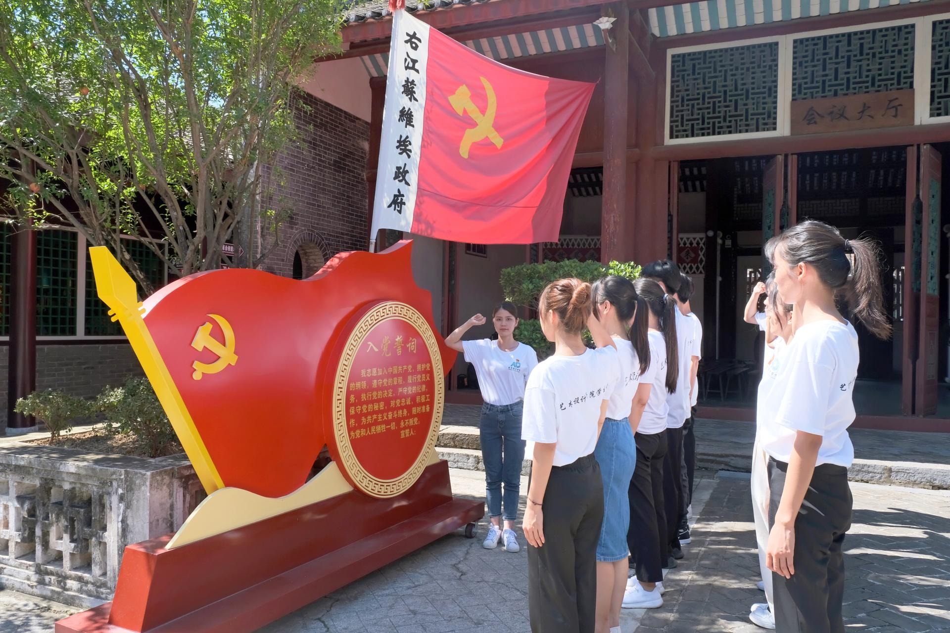 718日,qm球盟会艺术设计学院“匠心筑梦 ‘艺’心向党”党史学习实践团前往位于田东县的右江苏维埃政府旧址进行参观学习。