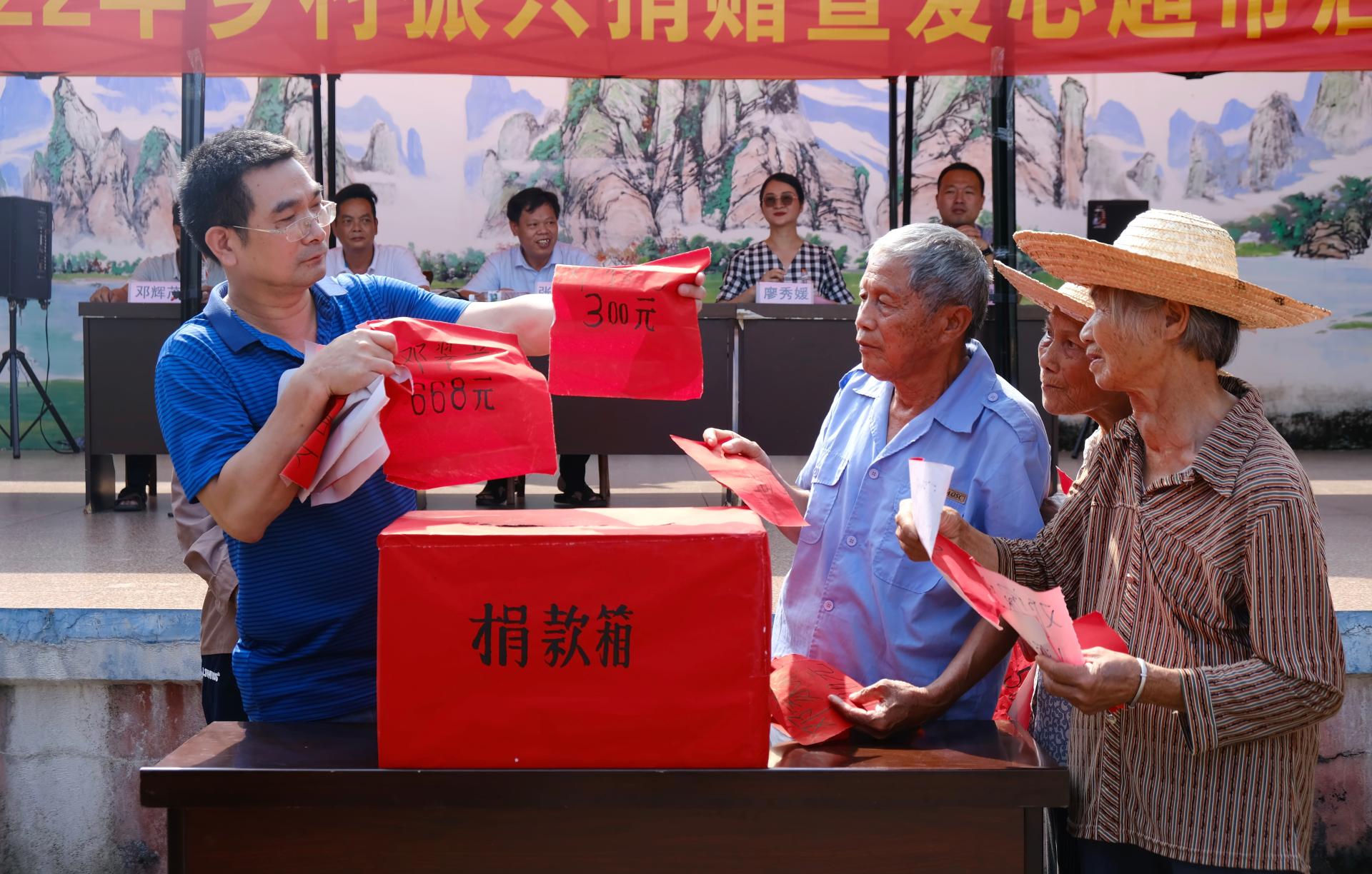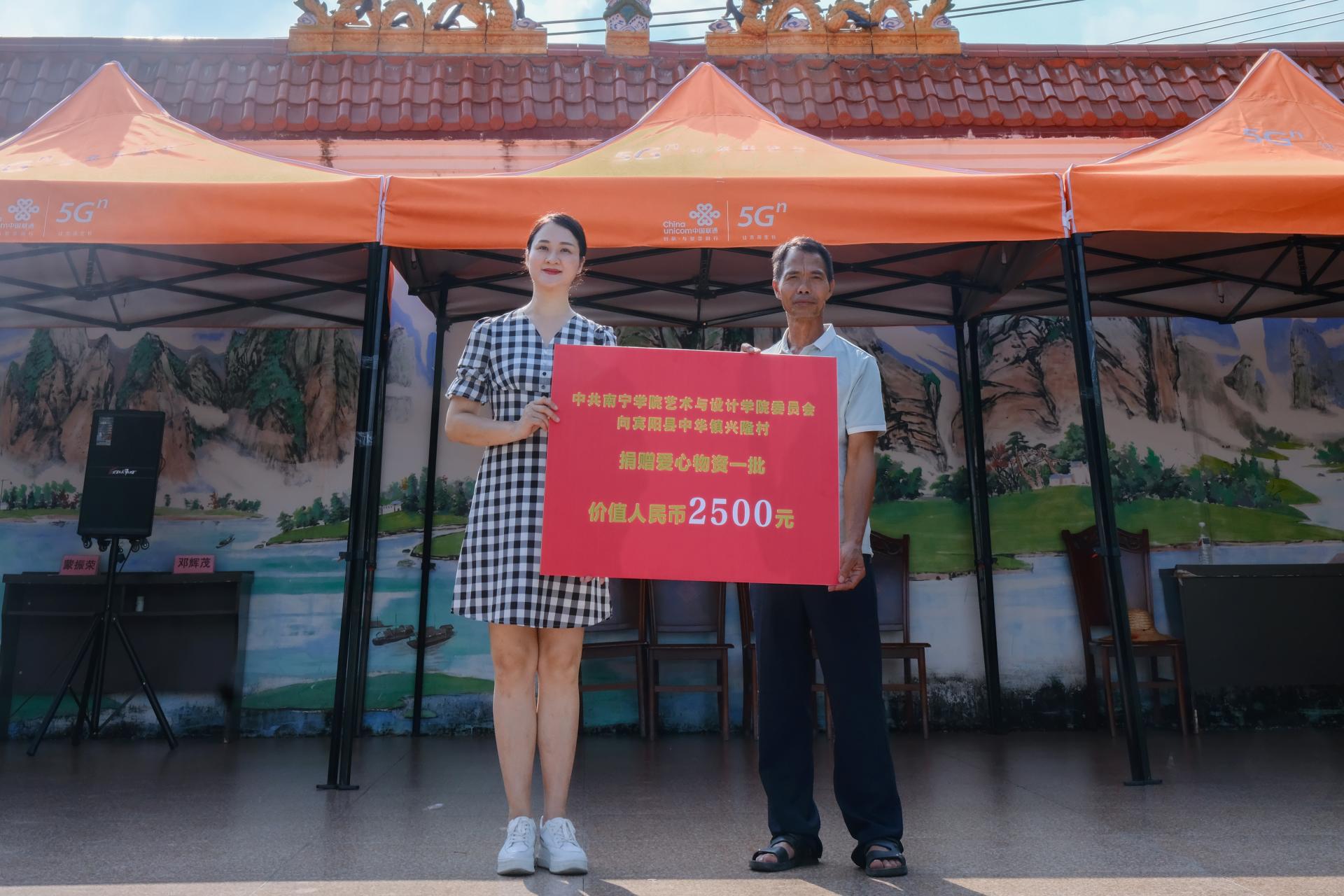 下午15时,村委在公共服务中心广场举行“百家齐心助振兴,建设美丽兴隆村”兴隆村2022年乡村振兴捐赠暨爱心积分超市启动仪式。中华镇党委副书记张世斌,育才村委党支部书记蒙振荣,qm球盟会艺术与设计学院党委副书记廖秀媛、副院长徐党卿,兴隆村村长邓辉茂等领导出席仪式。仪式上,实践团成员为兴隆村爱心超市捐赠爱心物资一批,助力爱心积分超市项目的启动。随后,兴隆村村长为实践团赠送“凝聚青年力量,助力乡村振兴”锦旗,对实践团为兴隆村乡村振兴做出的贡献表示感谢。同时,兴隆村的村民也对兴隆村进行爱心捐赠。
