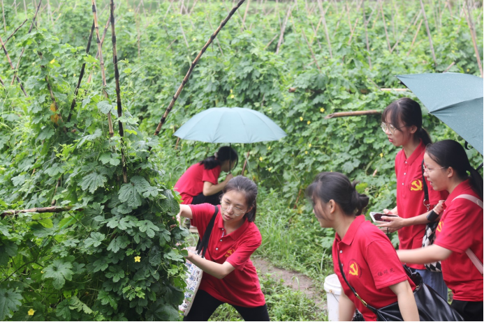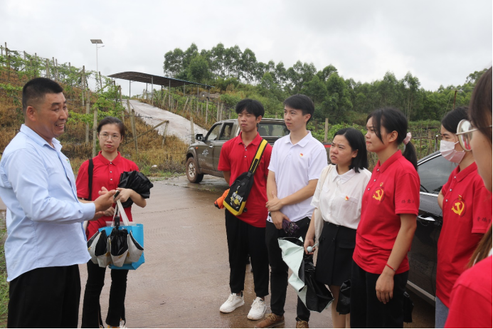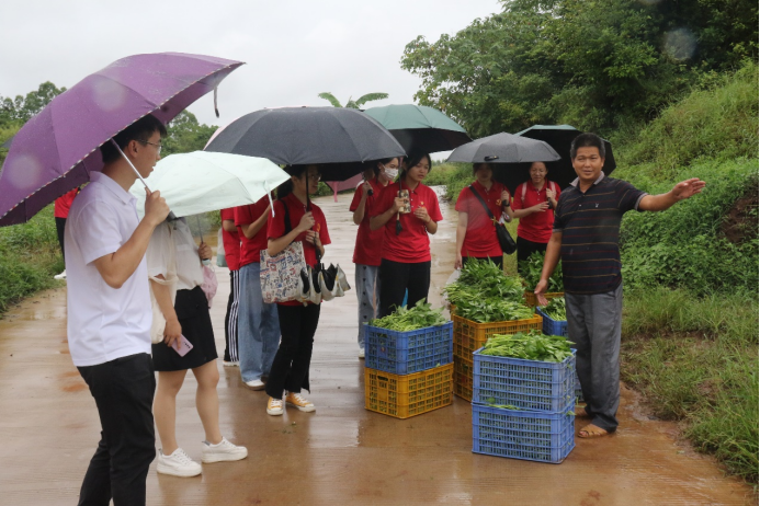 凝聚青春力量,助力乡村振兴。7月7日上午,qm球盟会食品与质量工程学院“乡村振兴青年行”考察团(以下简称三下乡团队)由学生科科长徐鸿宇带队,辅导员陈园园、刘春梅以及学院党支部同学一行15人赴广西荣业蔬菜种植基地、广西田野创新农业科技有限公司进行参观学习。