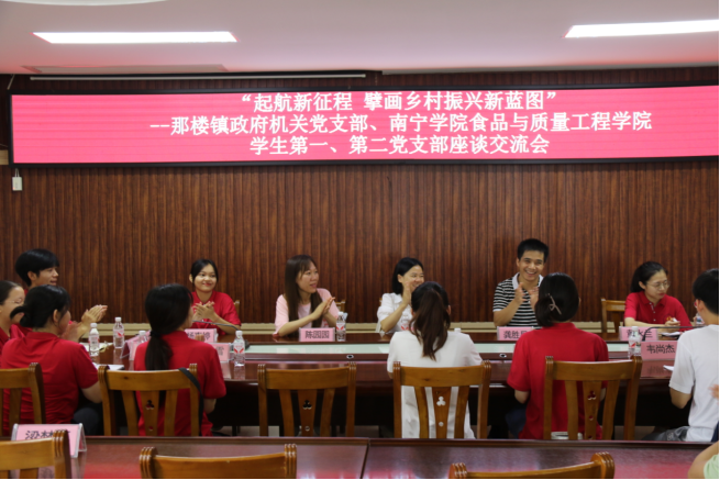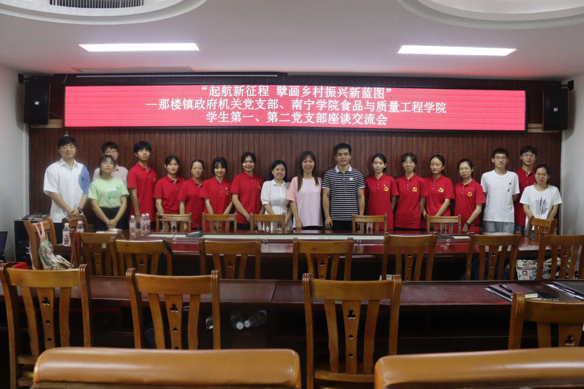 “启航新征程,壁花乡村振兴新蓝图”,7月8日上午,qm球盟会食品与质量工程学院“乡村振兴青年行”考察团(以下简称三下乡团队)由学院辅导员陈园园和刘春梅老师带队以及学院党支部同学一行14人赴那楼镇人民政府进行交流学习,三下乡团队受到了那楼镇人民政府党委龚胜显主任的热情接待,双方举行了座谈交流会。会上,龚胜显主任对学院三下乡团队的到来表示欢迎。