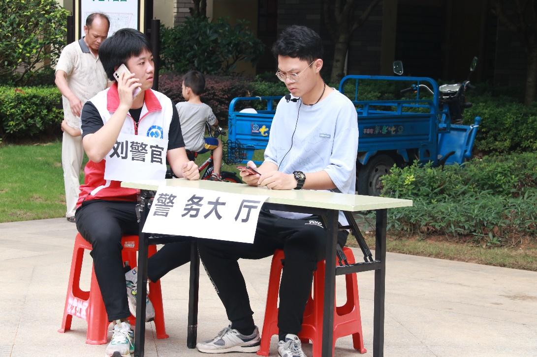反诈实践团为居民演绎情景剧《再精明的人也有糊涂的时候》,为居民演绎电信诈骗的过程