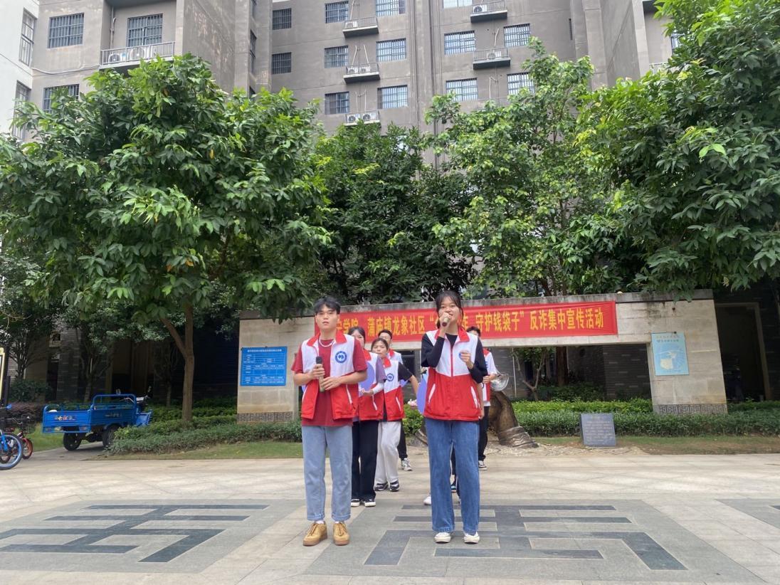 随后,南宁市公安局邕宁分局警官、广西北部湾银行龙福支行、龙象社区党群服务中心工作人员与反诈实践团一齐走进小区,走进居民生活,进行反诈知识的宣传。南宁市公安局邕宁分局张警官对反诈实践团宣传工作进行了指导,唐警官对为什么要下载国家反诈App、国家反诈中心App的作用以及现场与反诈实践团指导居民安装下载国家反诈中心App,最后希望反诈实践团先从自身提高反诈骗的意识,以及能结合自己所学专业,将专业理论知识运用到反诈宣传实践活动中,为“反诈防线”注入技术力量。
