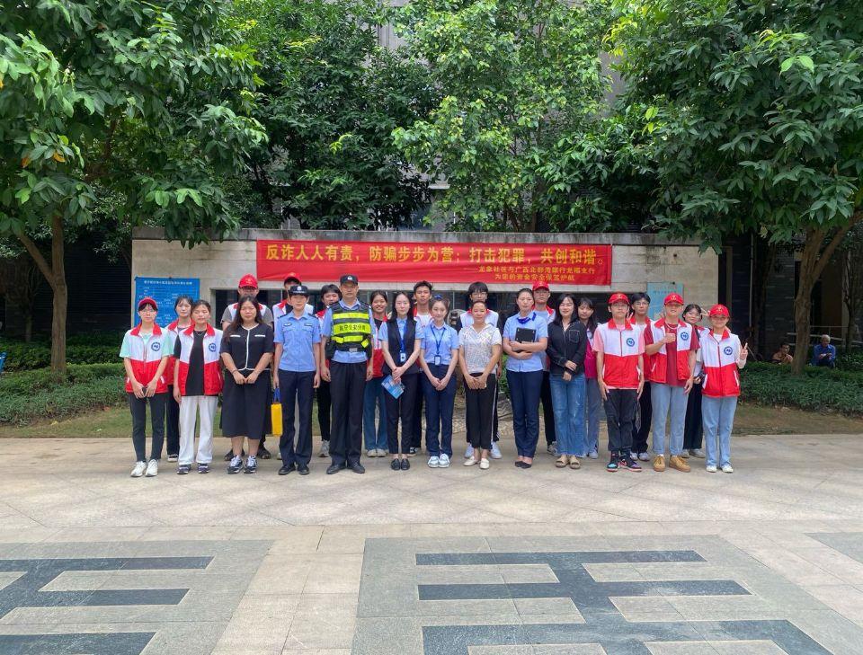 反诈实践团与南宁市公安局邕宁分局警官、广西北部湾银行龙福支行合影
