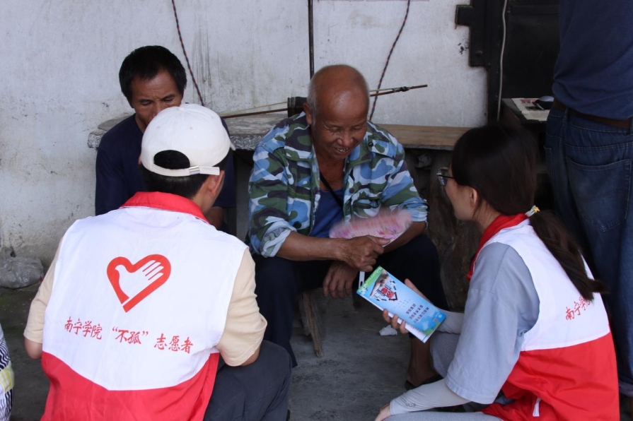 实践团成员向群众讲解劳动法、未成年人保护法、城乡居民养老保险政策