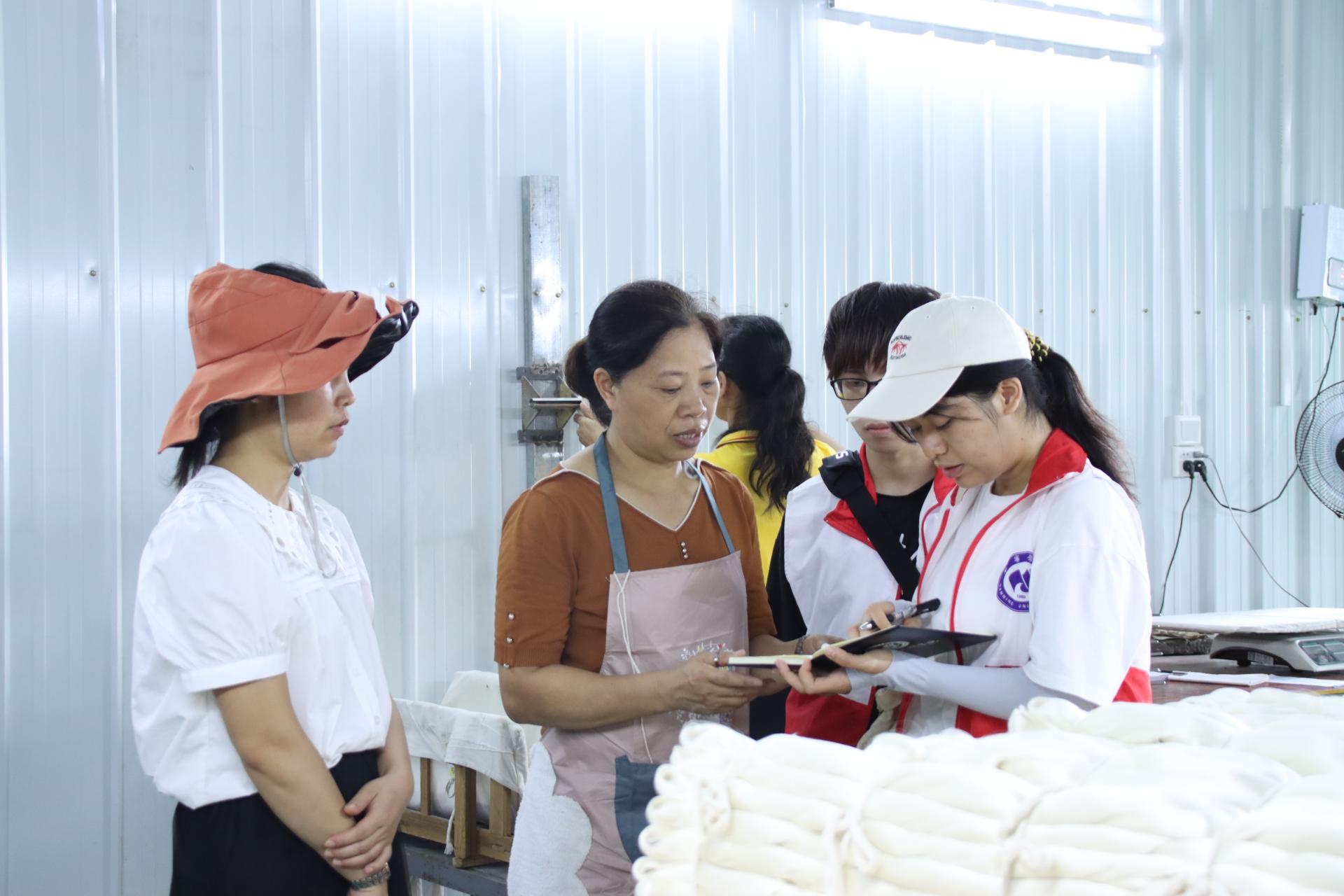 7月9日,韦铁益副主任带领实践团实地调研了扶贫车间柳州市思群柑桔种植专业合作社和民营企业流山镇桑蚕示范基地—柳州市海波茧丝绸有限责任公司。调研过程中,柑桔负责人向实践团介绍柑桔树是根据当地土质自行嫁接培育出的新品种;桑蚕示范基地负责人代领实践团参观了厂区蚕丝提取房和蚕丝被加工等生产过程。实践团成员还到广西逢吉粮油有限公司和螺蛳粉原材料竹笋基地参观,了解到当地政府通过特色扶贫车间和民营企业等产业化为当地群众增加了就业岗位,助力乡村振兴战略。