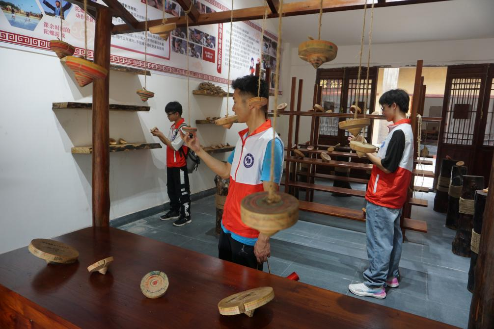 先锋队指导老师赵副书记体验花样陀螺