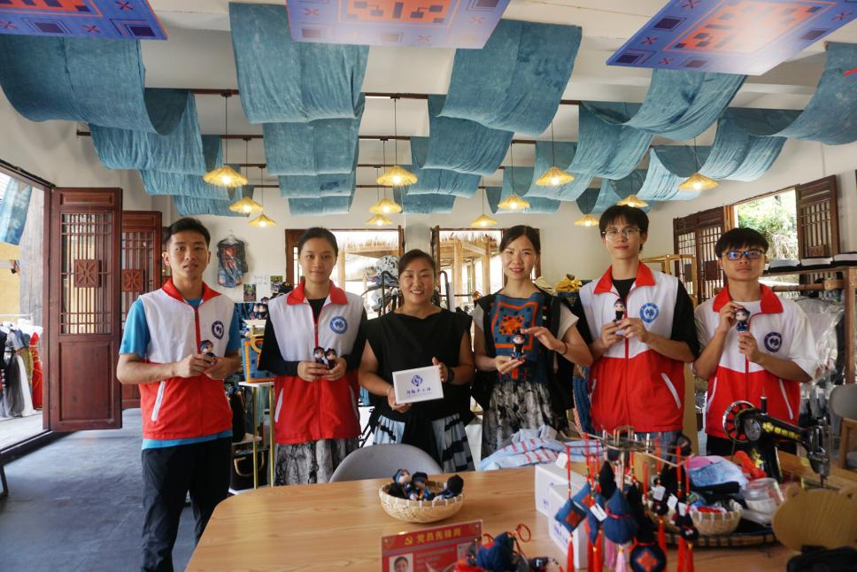 先锋队员在非遗服饰工艺品商店合影