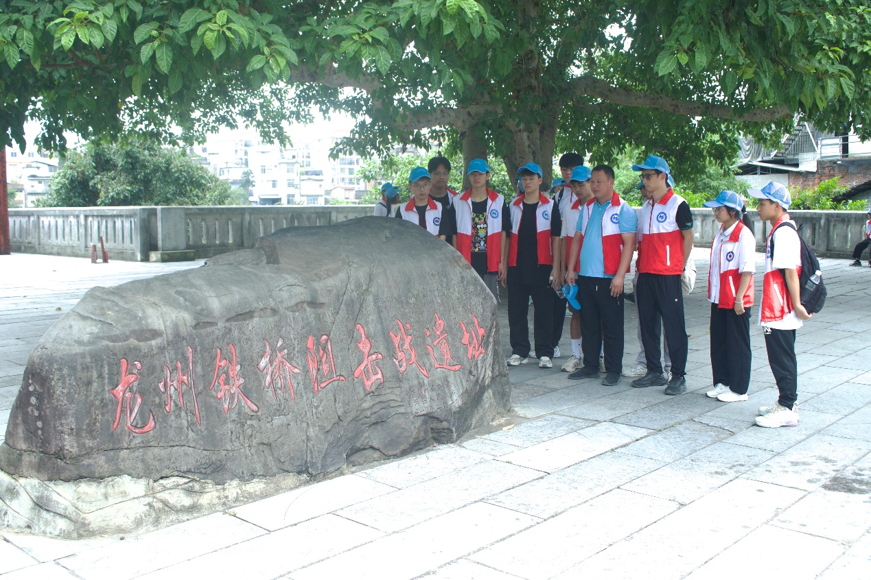 最后,实践团来到龙州铁桥狙击战遗址,进行实地考察、学习。龙州铁桥是民国时期唯一连接龙州县城南北的桥梁,也是广西最早的公路铁桥。1930年3月20日,桂系军队突袭龙州,军长俞作豫带领红八军将士据守龙州铁桥与敌军展开了惨烈的铁桥阻击战,共毙敌800多人,400多名红八军将士壮烈牺牲。