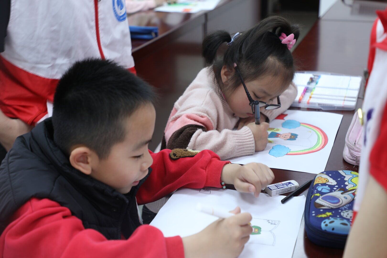 小朋友在绘画雷锋形象
