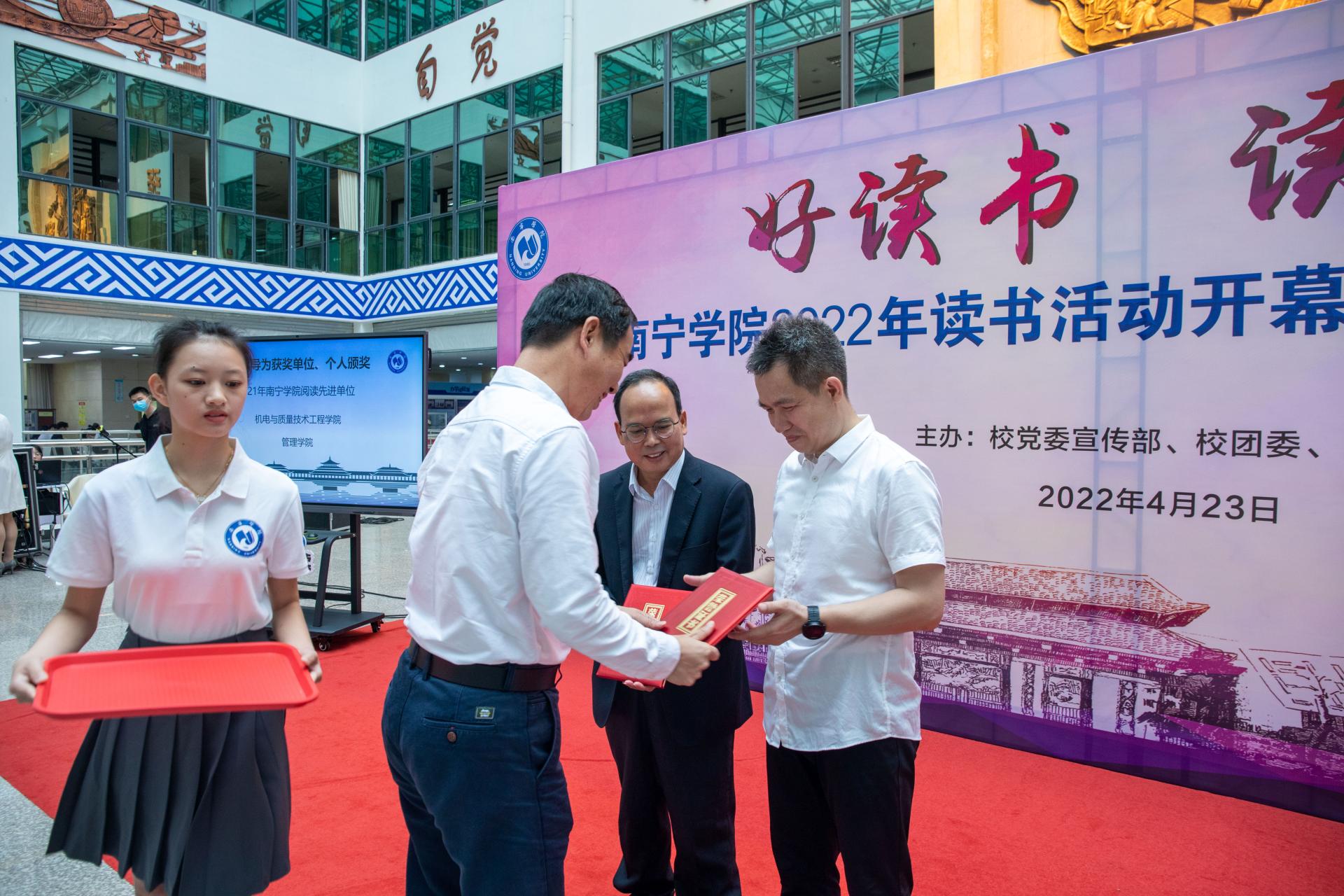 开幕式上,学校图书馆馆长谢清宣布获得“2021年qm球盟会阅读先进单位”“2021年qm球盟会积极荐书单位”“2021年qm球盟会勤奋读者”名单。学校党委书记刘彪、校长李栋学,学校党委副书记、纪委书记覃存民,副校长李陶深、龚击分别为获奖单位、个人颁奖。