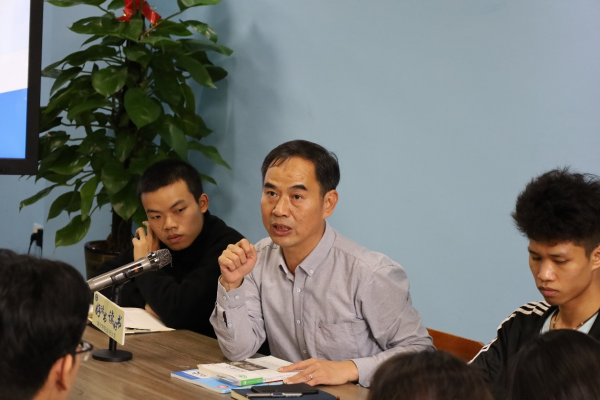 李校长为师生以“养成良好习惯”为切入点,结合他自身爱阅读、爱运动的习惯,引导同学们在大学期间为何读书、如何读书,并通过他个人的阅历和求学求知过程中的经验,对如何阅读、善于阅读做了生动诠释。现场气氛热烈,同学们都踊跃举手,分享自己对《世界简史》的阅读感悟。雷光杰同学表达了自己对《世界简史》这本书的看法,还由自身的发展外延到个人在历史中的生存发展。李校长提倡同学们要学会批判性读书,并对书中“时间和空间的如何产生?”“人与动物的最大区别是什么”“耕耘中“耕”与“耘”是密不可分”等方面进行深入的探讨。