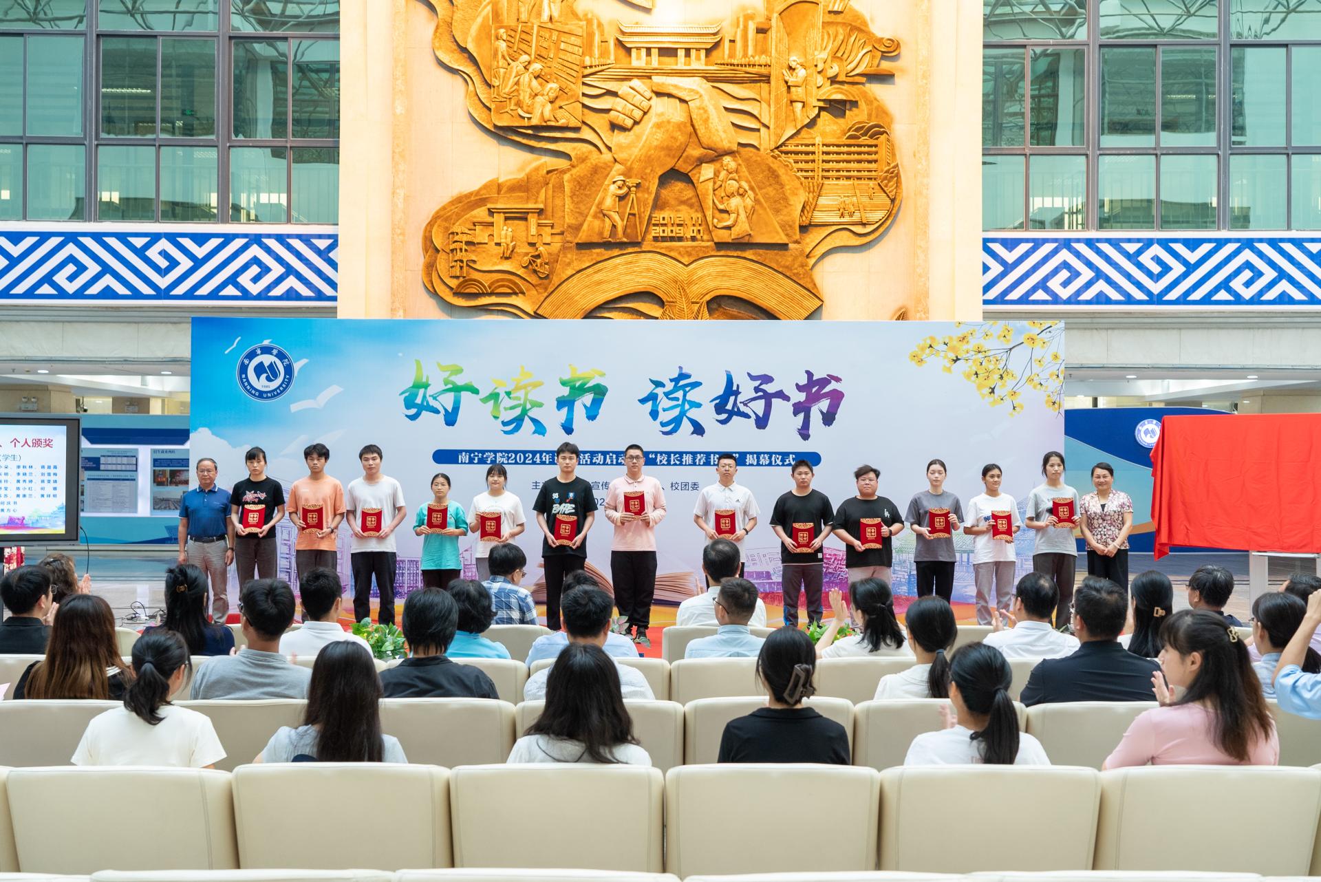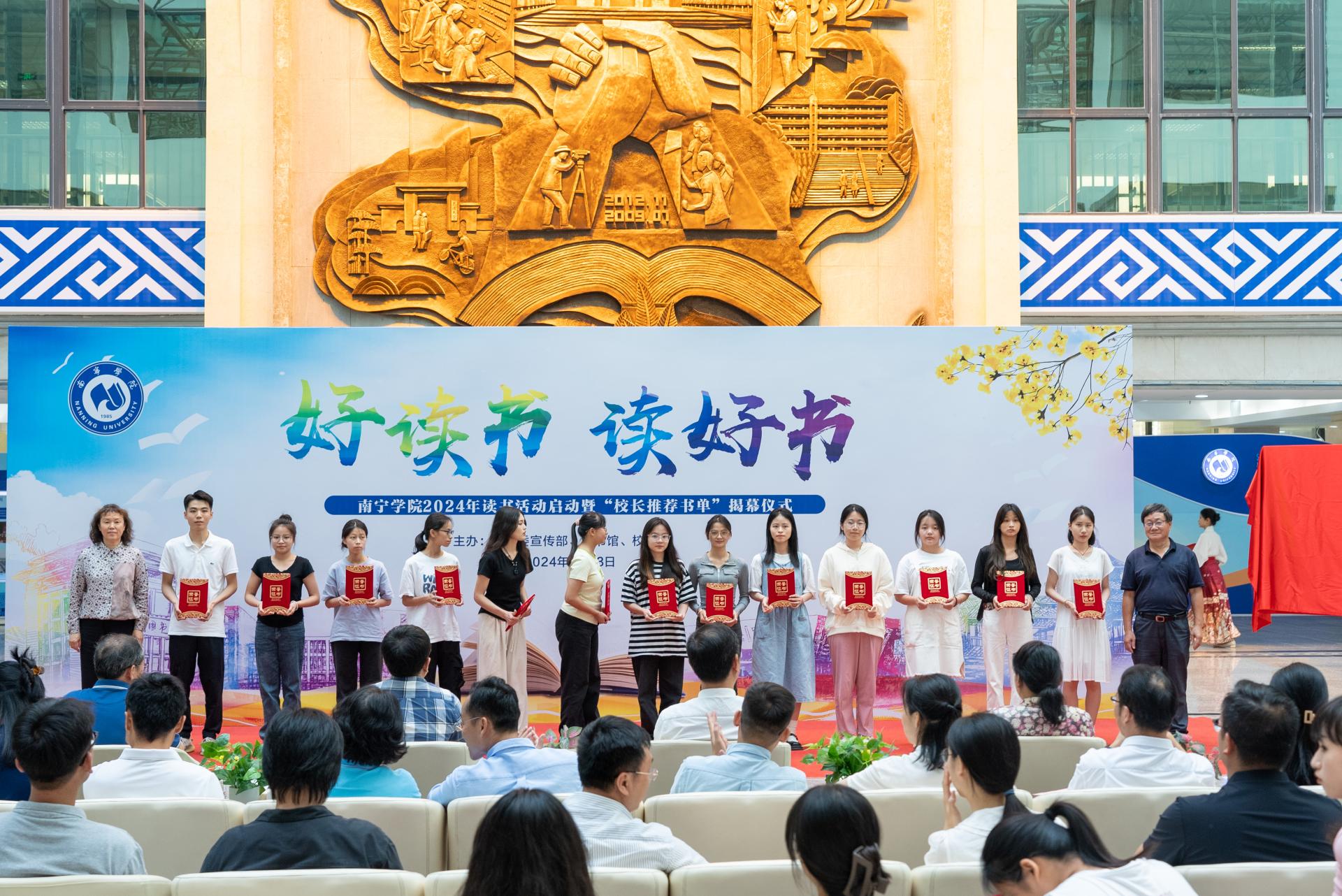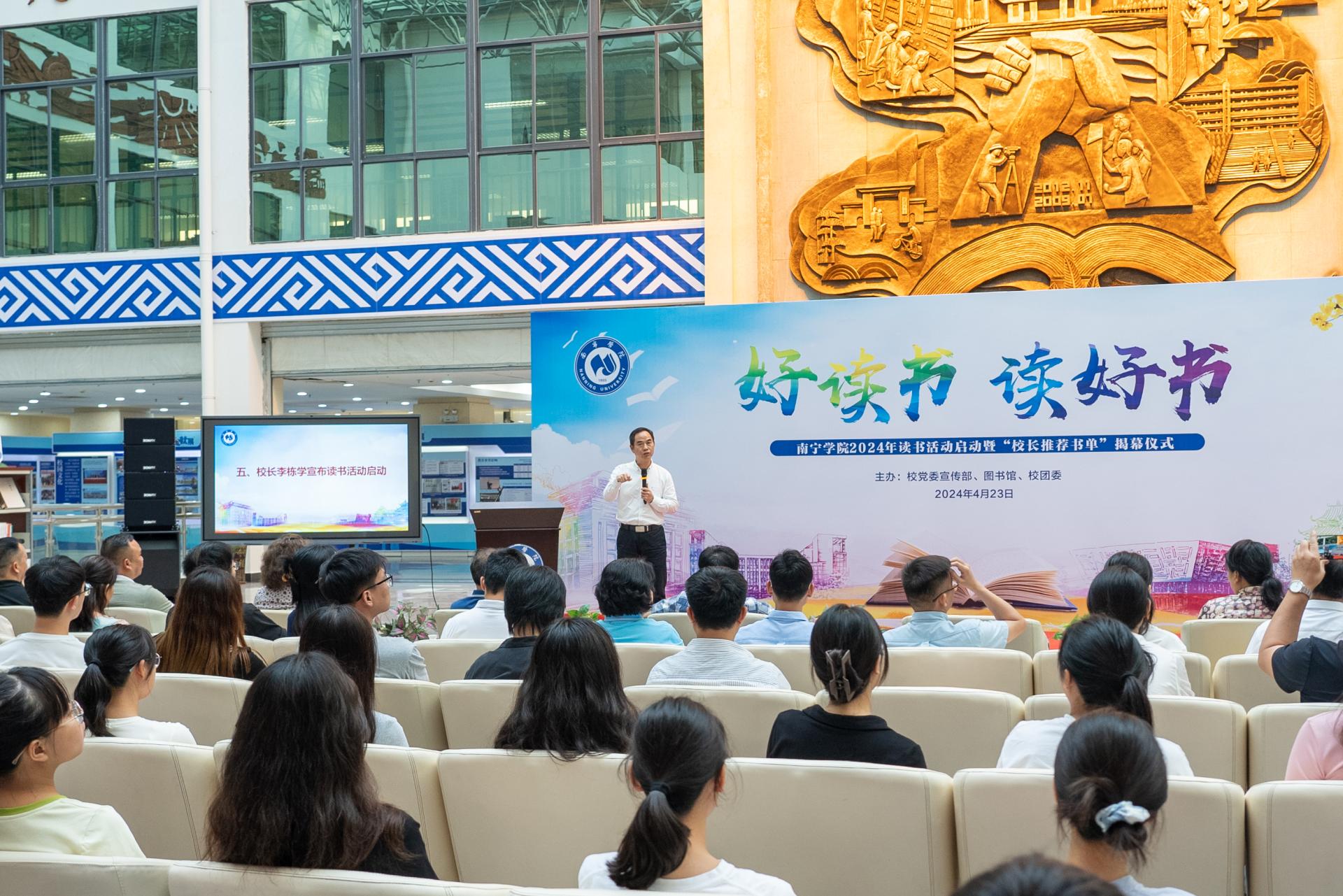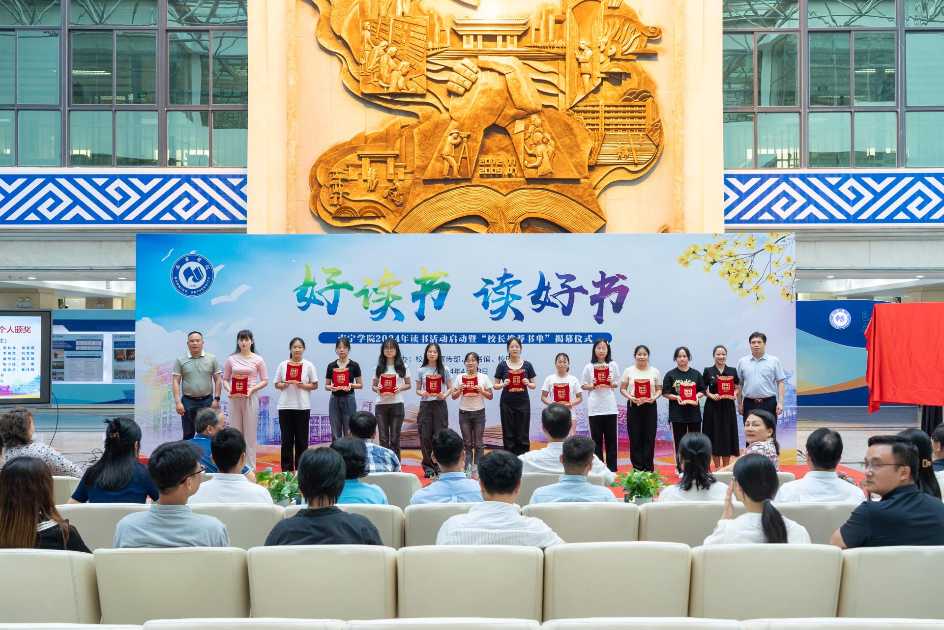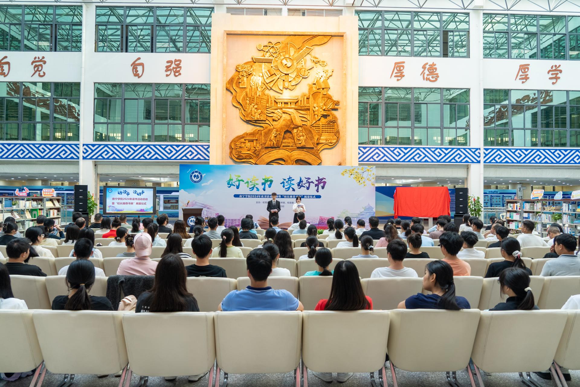 为推进书香南院建设,4月23日,在第29个“世界读书日”当天,qm球盟会在图书馆中庭举行2024年读书活动启动暨“校长推荐书单”揭幕仪式。校长李栋学,校党委书记刘彪,校党委副书记、副校长韦粤桂,副校长陈雄章,副校长李陶深,纪委书记曹文军,副校长王宁章,副校长龚击;学校各单位、部门负责人,获奖师生以及二级学院师生代表参加开幕式。