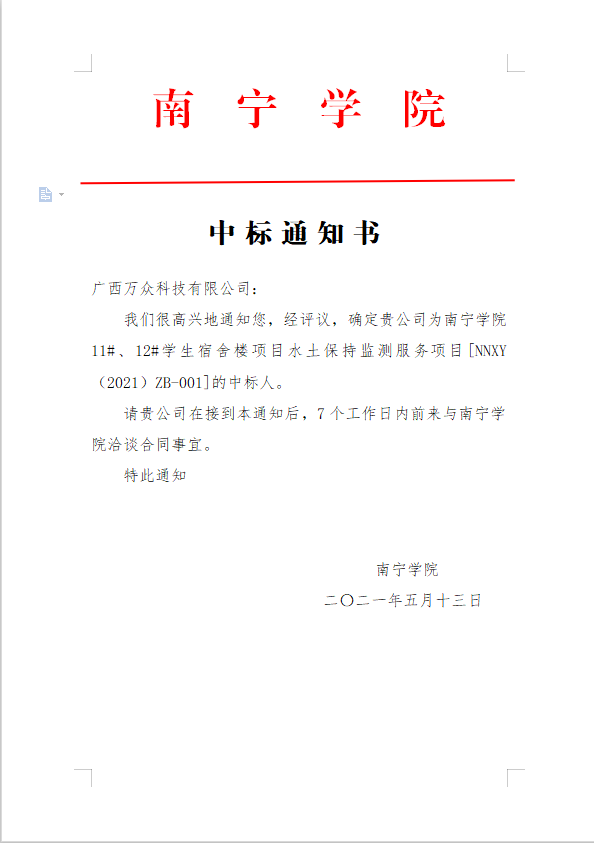 中标通知书(水土监测)