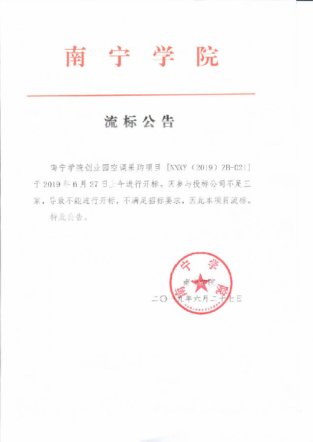 qm球盟会创业园空调采购项目流标公告