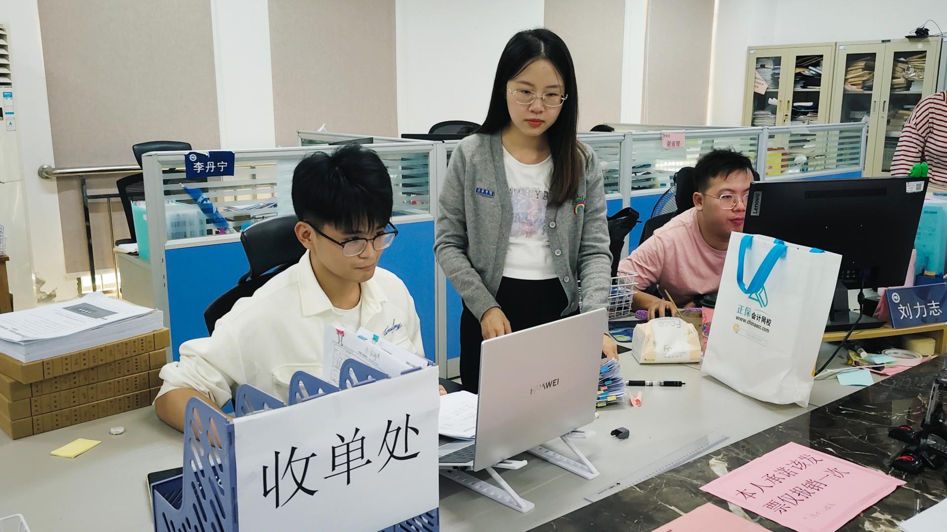 财务处副处长黄凌毓为学生讲解实务操作