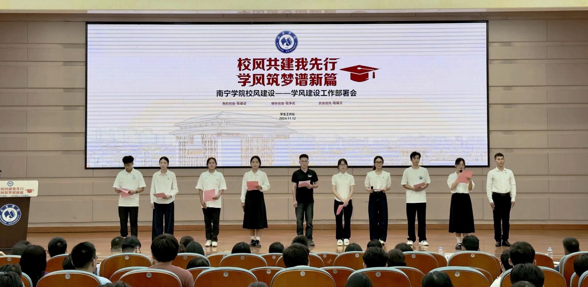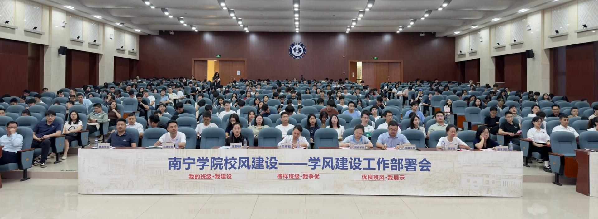 学风建设是校风建设中的重要内容,为积极落实此前学校校风建设动员部署会会议精神,进一步深化我校校风建设,落实立德树人根本任务,培育良好的校园风气,推进学校的学风建设,学校于11月12日在图书馆报告厅召开了“校风共建我先行,学风筑梦谱新篇”为主题的校风建设—学风建设工作动员部署会。学校党委副书记、副校长韦粤桂,学工处、校团委全体成员,各二级学院分管学生工作的学院领导,全体专兼职辅导员、班主任和各基层班级学生代表参加了此次会议,会议由校团委书记李志主持。