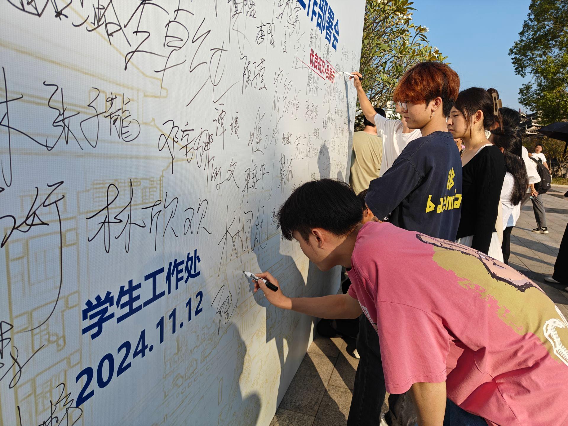 动员部署会还在图书馆报告厅前设置了主题签名墙,共邀师生参与签名,希望通过签名切实增强师生们的主人翁意识,在校内营造良好的学风建设氛围。此次动员部署会不仅是一次学风建设的经验交流会,更是一次加强学风建设的推进会,为今后学校优良校风形成,内涵式高质量发展奠定扎实基础。(学生工作处供稿 文/刘容杏 图/郑翔元)