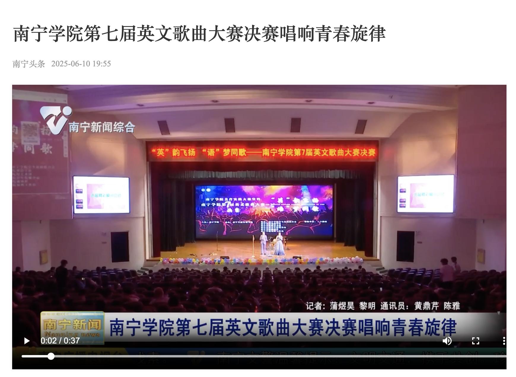 【媒体看南院】南宁电视台、南宁日报报道qm球盟会第七届英文歌曲大赛决赛唱响青春旋律