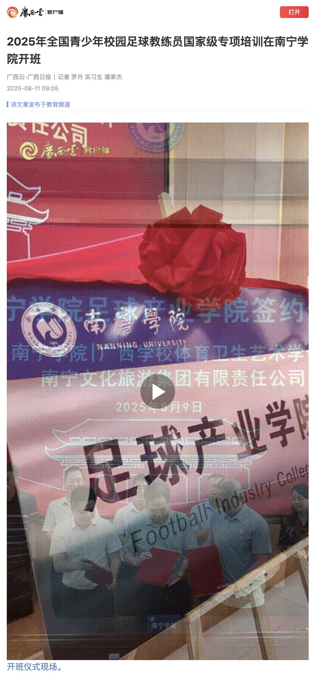 1.广西日报:2025年全国青少年校园足球教练员国家级专项培训在qm球盟会开班