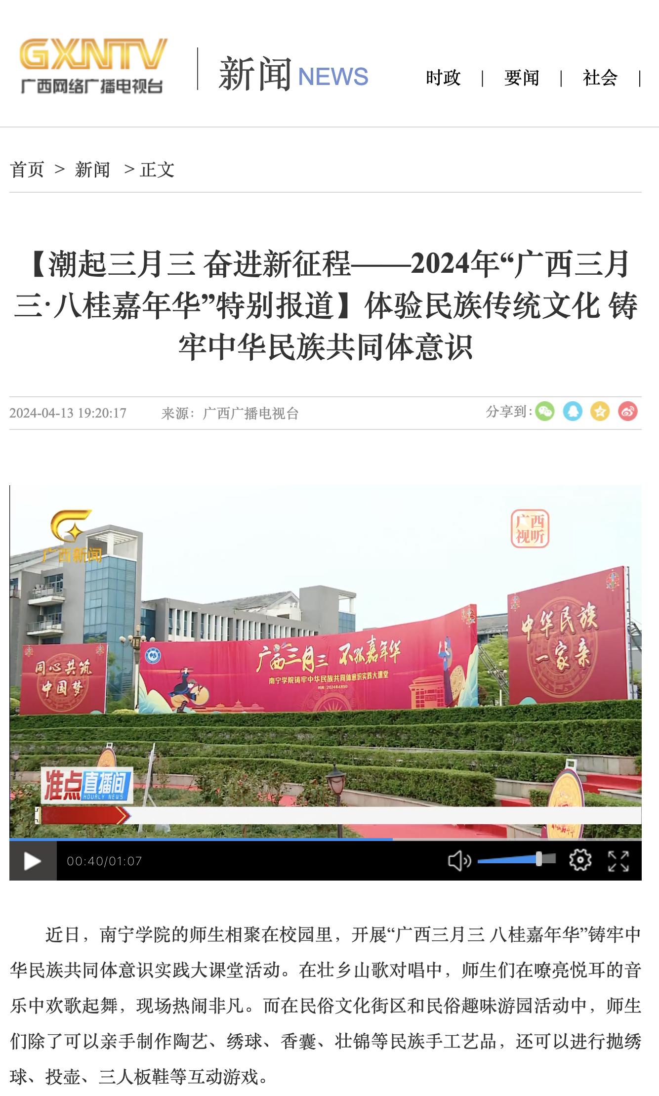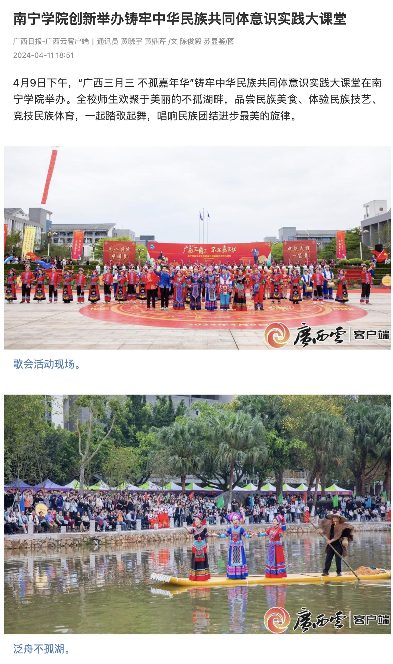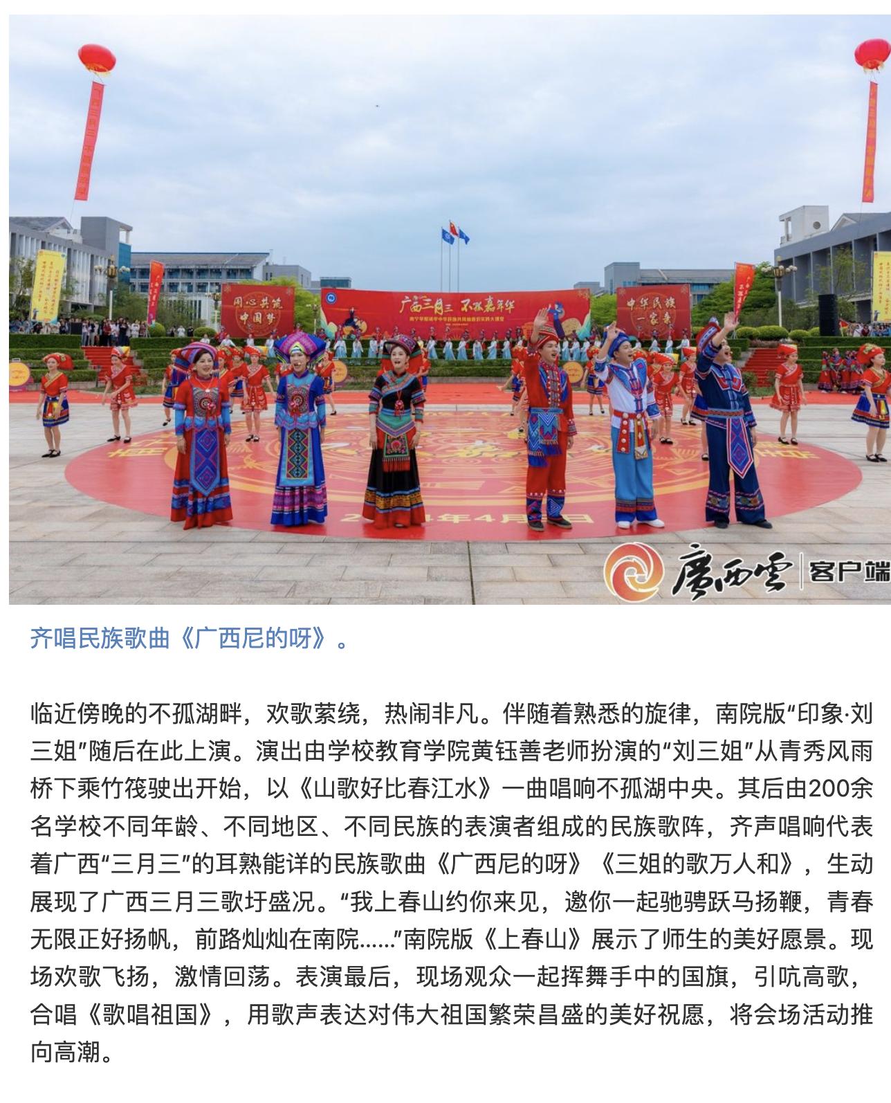 【媒体看南院】多家媒体报道我校“广西三月三 不孤嘉年华”铸牢中华民族共同体意识实践大课堂