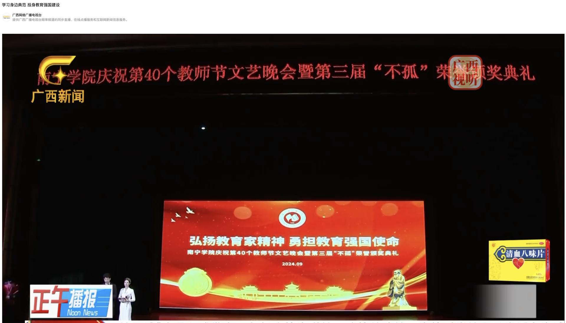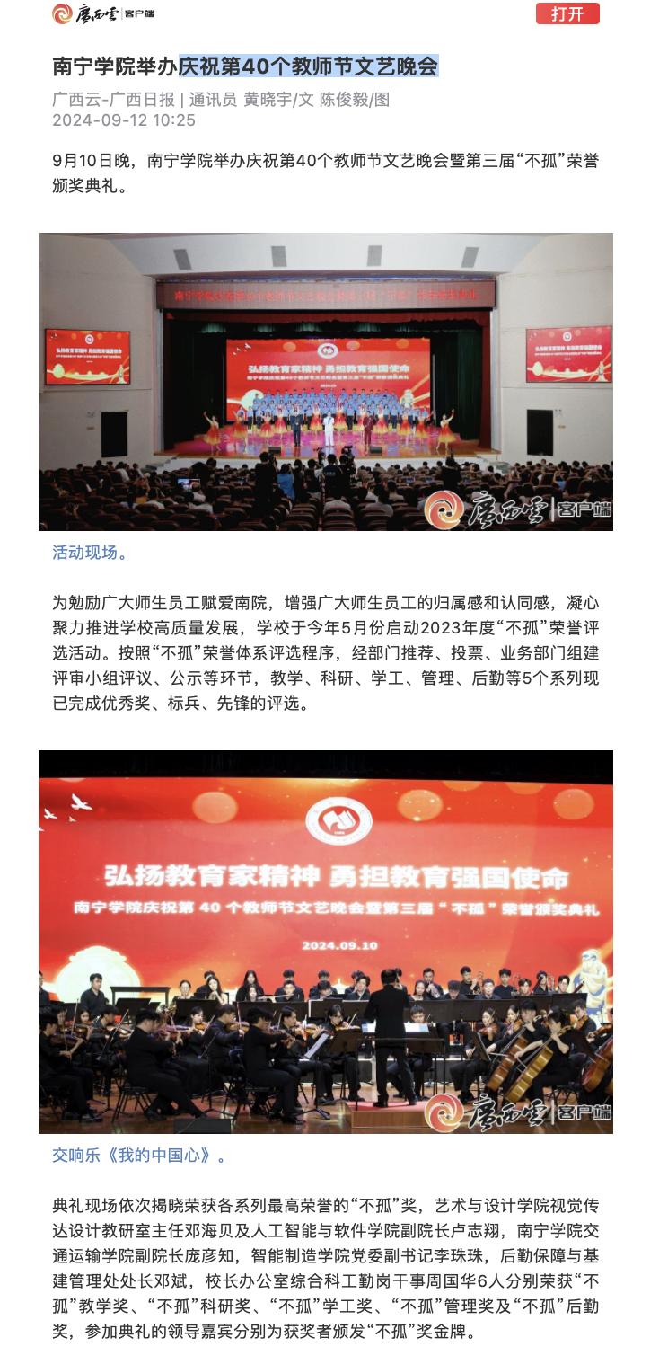 【媒体看南院】广西日报、广西电视台等多家媒体报道学校举办庆祝第40个教师节文艺晚会