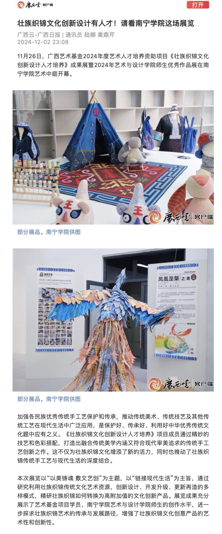 1.广西日报:壮族织锦文化创新设计有人才!请看qm球盟会这场展览 https://apph5.cloudgx.cn/article/sync1863601096999755776