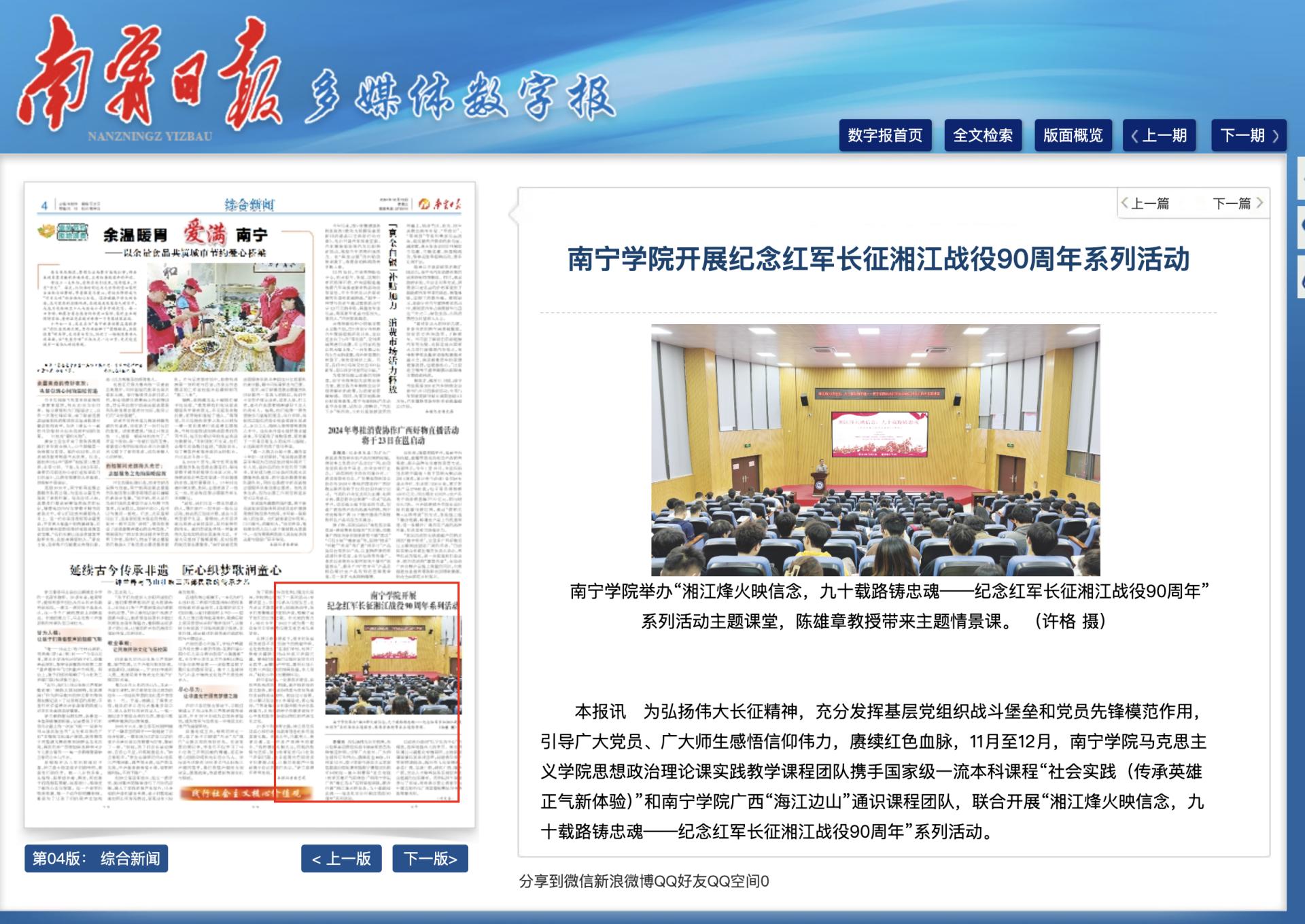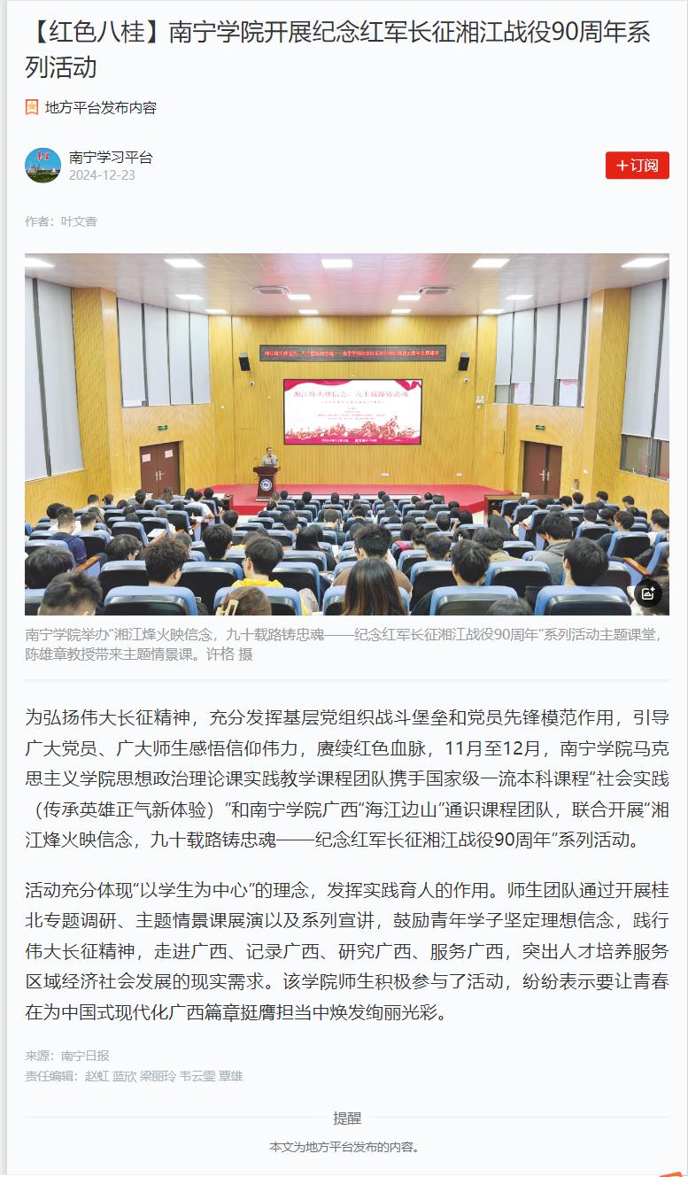 【媒体看南院】南宁日报、学习强国等平台报道qm球盟会开展纪念红军长征湘江战役90周年系列活动