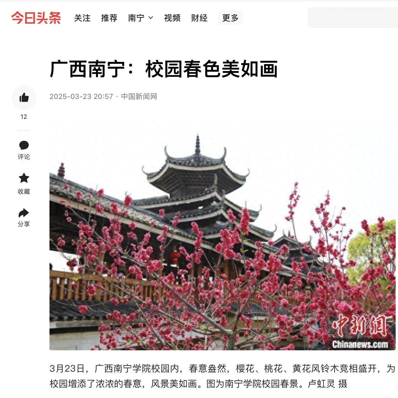 3.今日头条网:广西南宁:校园春色美如画https://www.toutiao.com/article/7484988333774111283/?upstream_biz=toutiao_pc&source=m_redirect