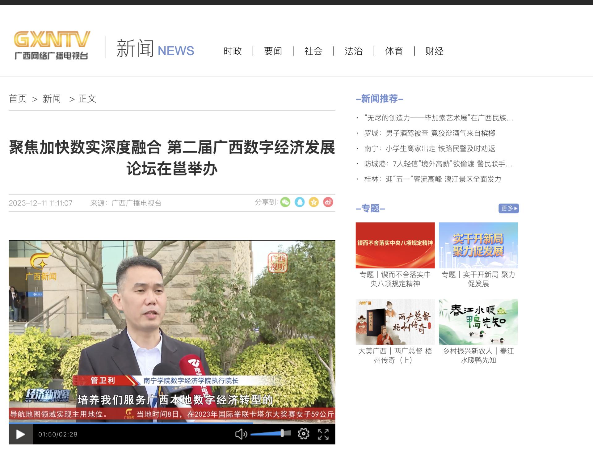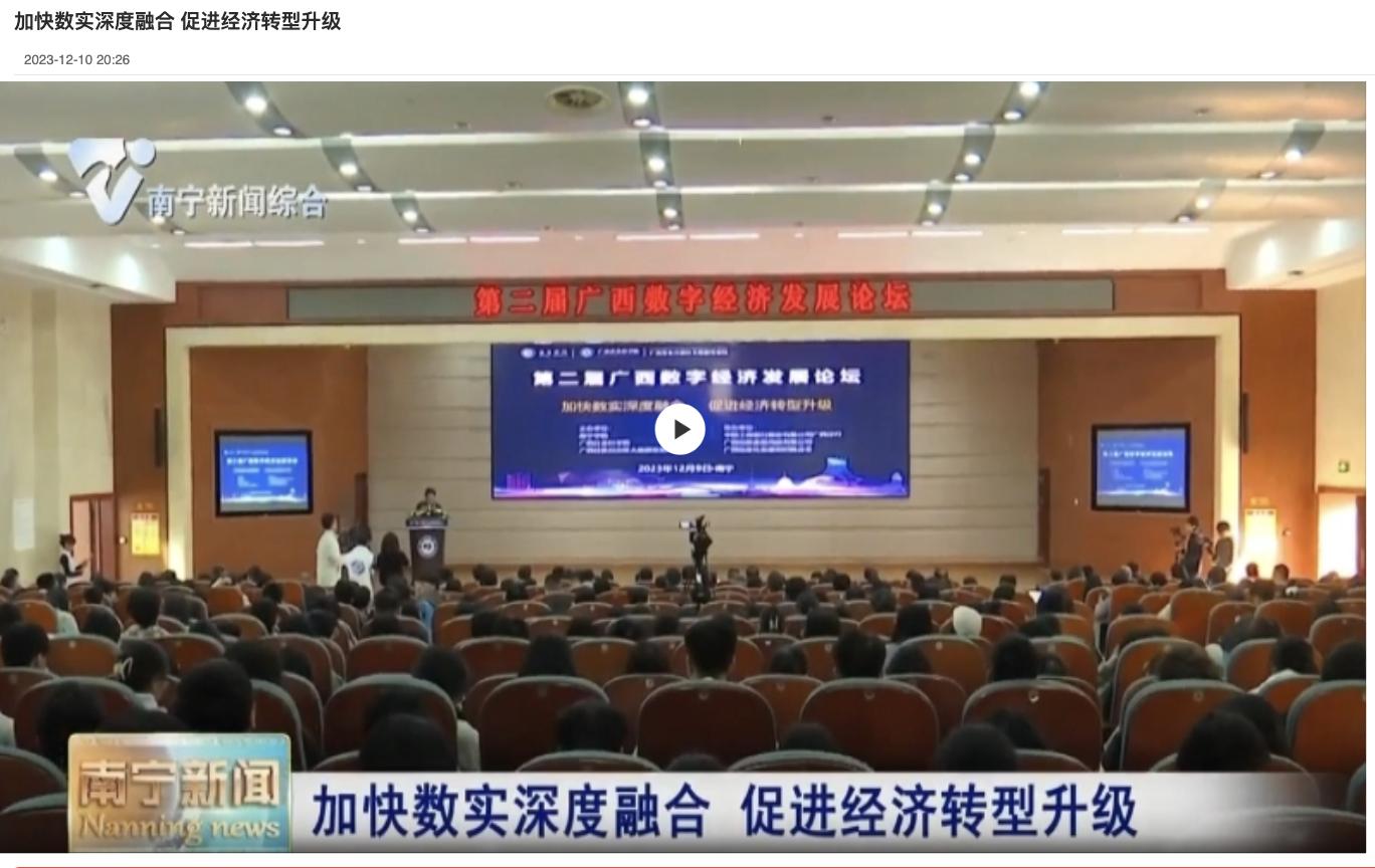 2.广西电视台:聚焦加快数实深度融合 第二届广西数字经济发展论坛在邕举办 https://news.gxtv.cn/article/detail_88868e9451ba46fd8e5b6c944a326377.html