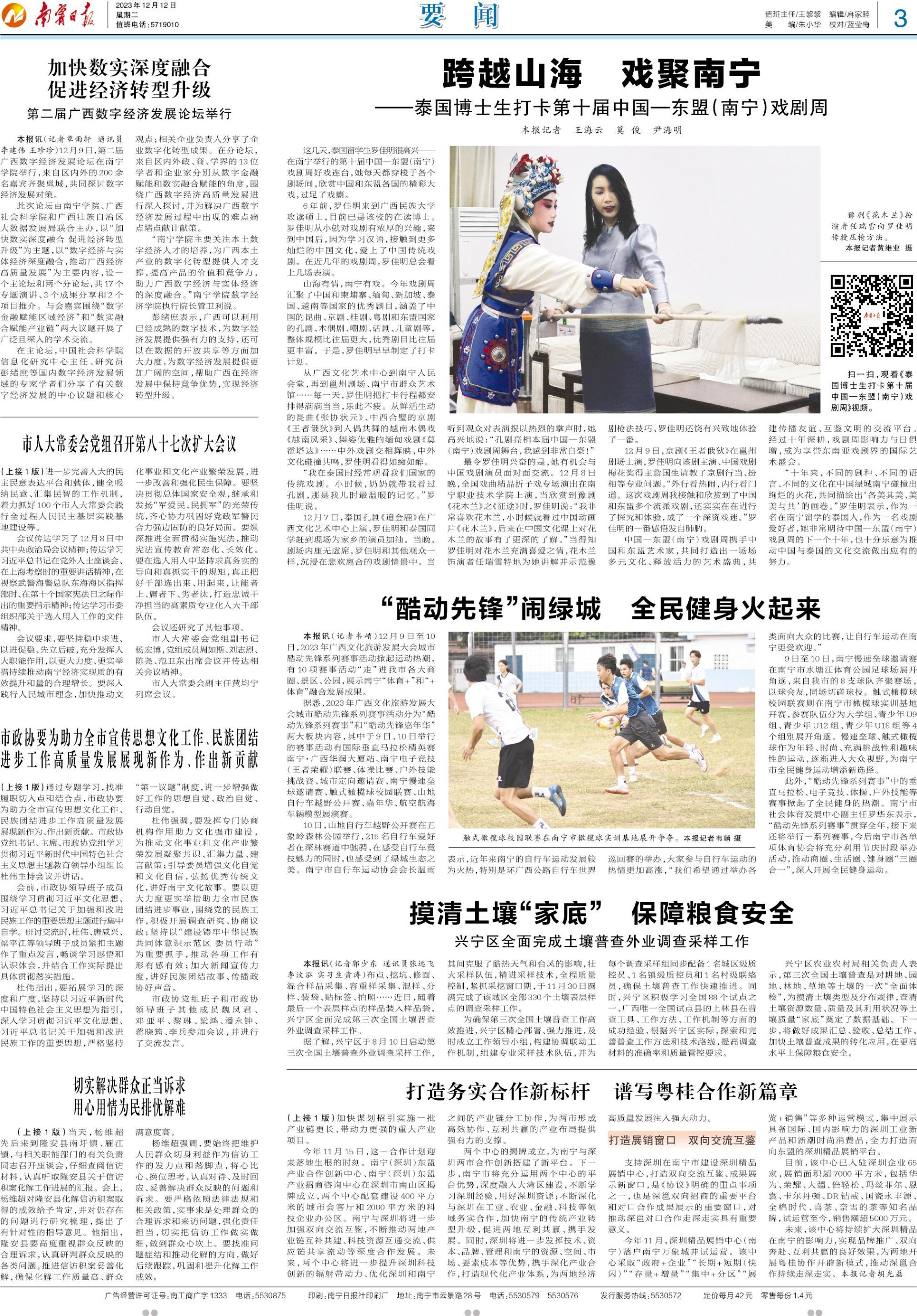4.南宁日报:加快数实深度融合 促进经济转型升级 第二届广西数宇经济发展论坛举行 http://www.nnrb.com.cn/nnrb/20231212/html/page_02_content_004.htm